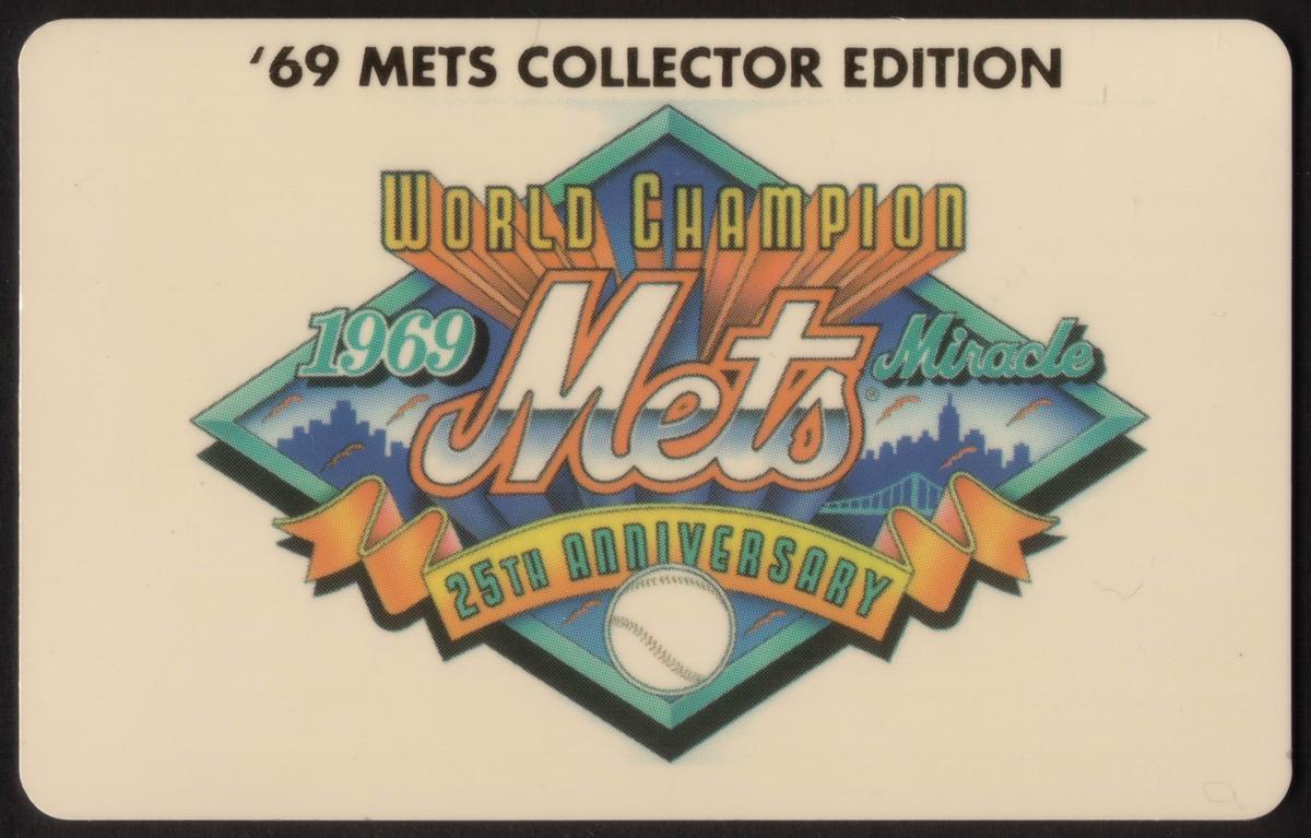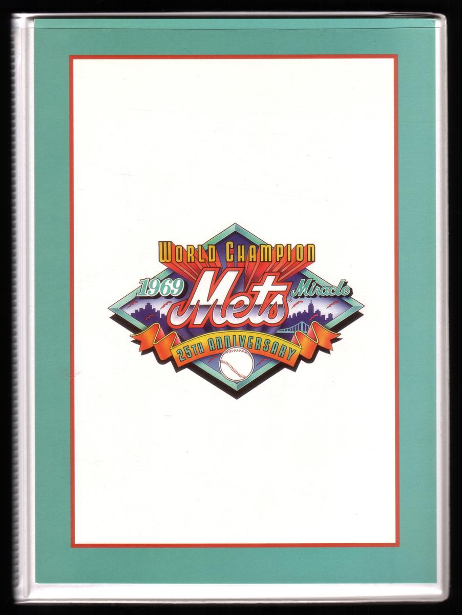 This collectible set consists of 32 cards celebrating the 25th anniversary of the 1969 New York Mets World Championship, known as the "Miracle Mets." Each card features a hand-drawn portrait of a player or figure associated with the 1969 Mets team. All cards bear the title "'69 METS COLLECTOR EDITION" at the top. Below the portraits is a colorful emblem that says "World Champion Mets 1969 Miracle 25th Anniversary" with a baseball diamond and ball graphic. Each card also includes the name of the featured person printed at the bottom.