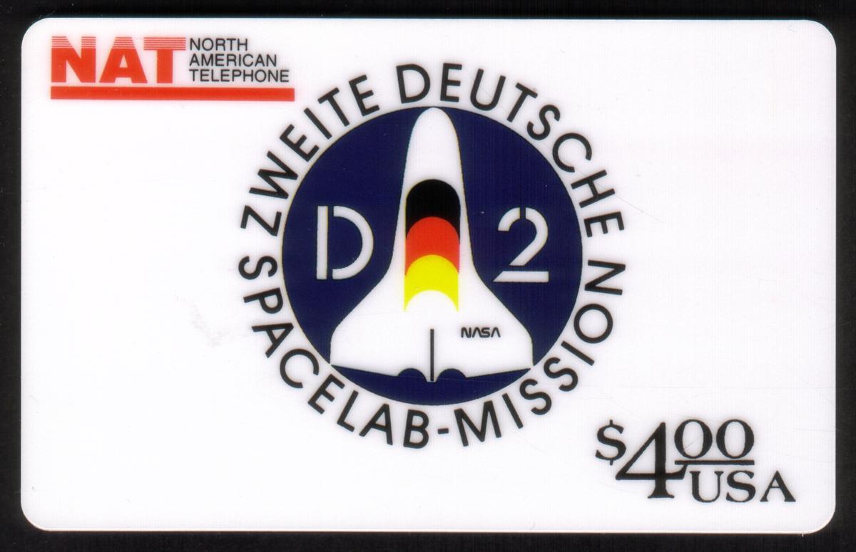 This phone card commemorates a specific phase in human space flight history, focusing on the collaborative efforts during the Germany Spacelab D2 mission facilitated by NASA. It is a collectible reflecting a significant space program event while serving a telecommunication purpose, with a clear denomination and official logos.