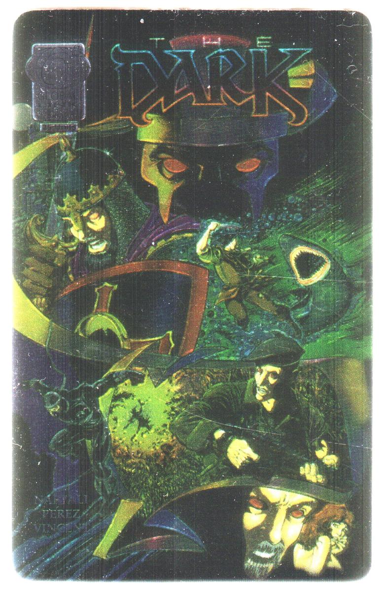 These are two collectible phone cards from Peoples Telephone Co., featuring artwork from "The Dark," a fantasy and comic series illustrated by Bart Sears, with contributions by Naftali Sears and Naftali Perez Vincent. Both cards prominently display the title "The Dark" at the top in a bold, stylized font that complements the dark fantasy theme of the artwork.