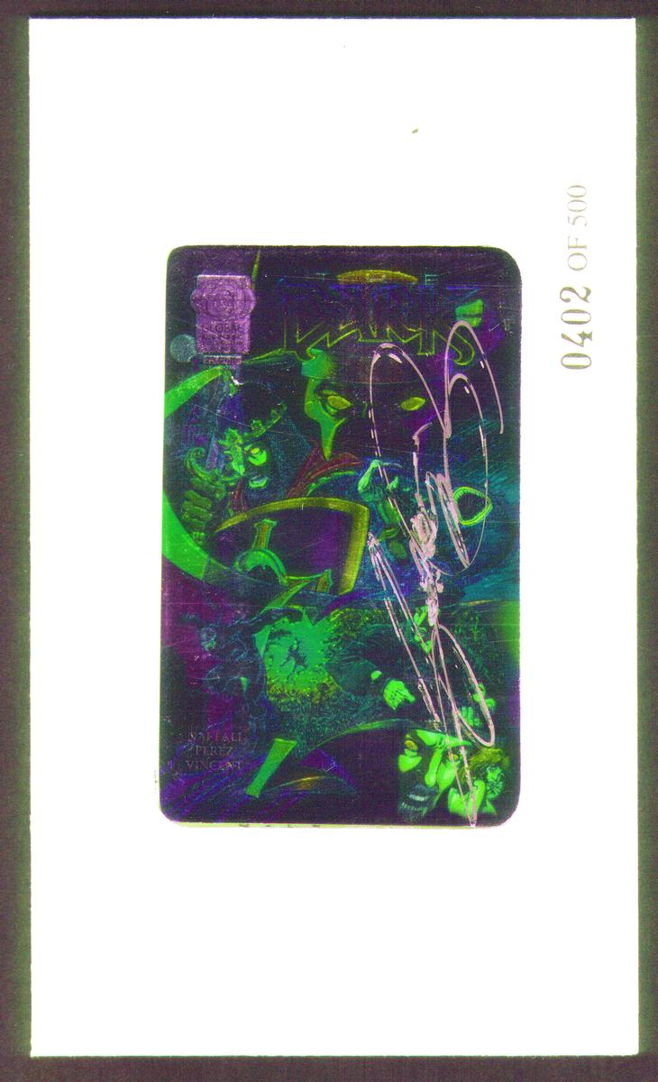 This set of two signed phone cards is part of a specialized collection that highlights the artistry of Bart Sears, Naftali Sears, and Perez Vincent, merging fantasy, animation, and comics. The collaboration and artistic signatures make this set a notable collectible for fans of graphic novels, comic art, and animation-themed memorabilia.