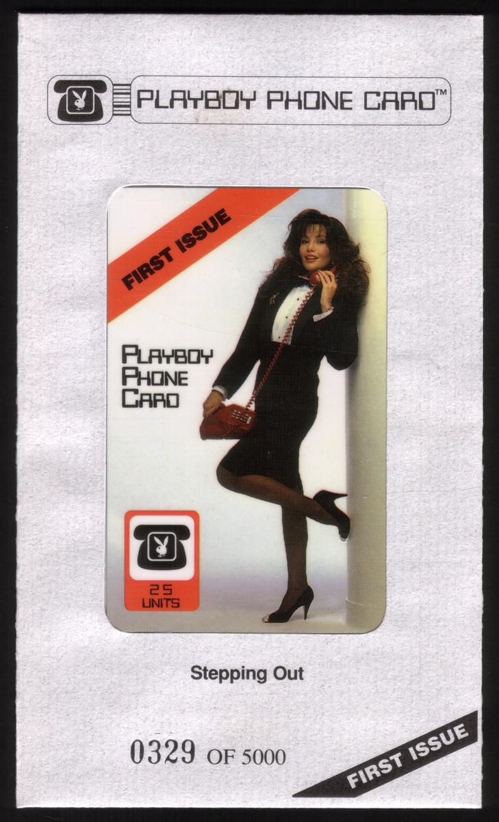 No other logos, marks, or graphics are visible beyond those mentioned, providing a straightforward presentation focused solely on the Playboy model and the card’s telephone value. The card embodies collectible aspects tied to men’s entertainment and telephone usage.