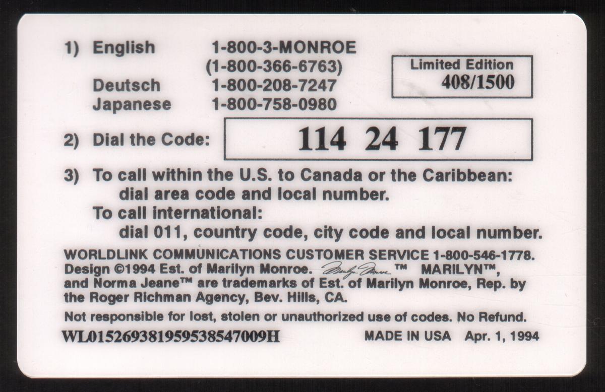 These collectible phone cards by WorldLink feature iconic images of Marilyn Monroe, the legendary Hollywood actress and entertainer. Each card includes a famous photographic portrait of Marilyn Monroe, with her signature beautifully printed on the front.