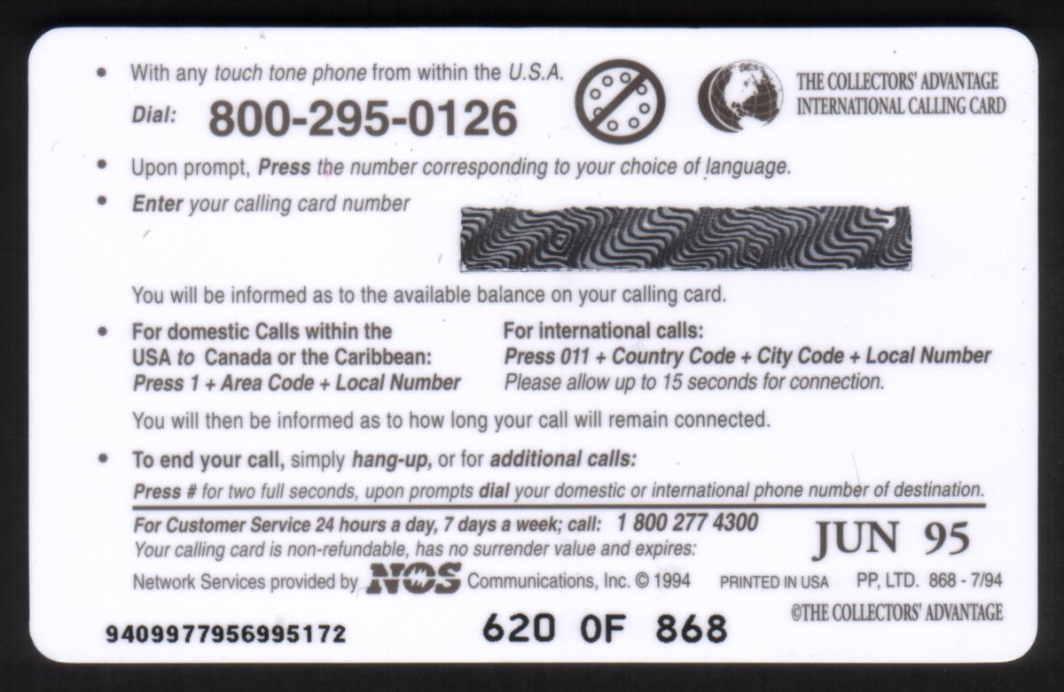 Since we have the world's largest inventory of USA phonecards for collectors, you will not necessarily receive the identical serial/batch/PIN number that we have scanned/pictured.