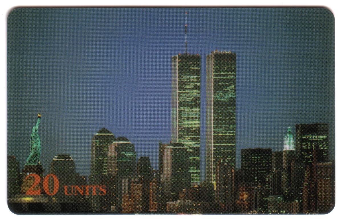 Overall, it is a collectible phone card that celebrates two of the most recognizable symbols of New York City, the Statue of Liberty and the World Trade Center, emphasizing their importance in urban and cultural tourism.