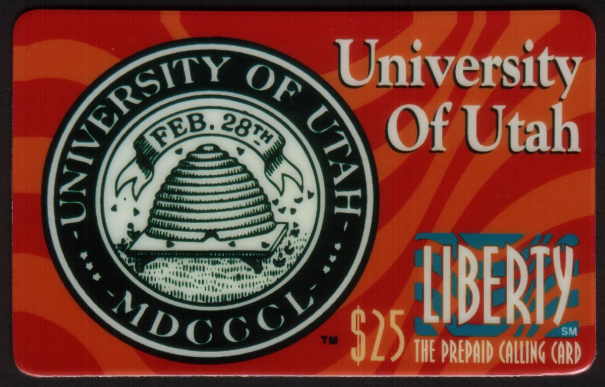 The card is associated with education, universities, and colleges, specifically linked to Utah as indicated by the keywords and the logo itself. There are no additional images, characters, or detailed artwork beyond the university emblem and the text elements. The card’s overall appearance is simple yet effective, highlighting the University of Utah’s emblem for promotional or collectible purposes.