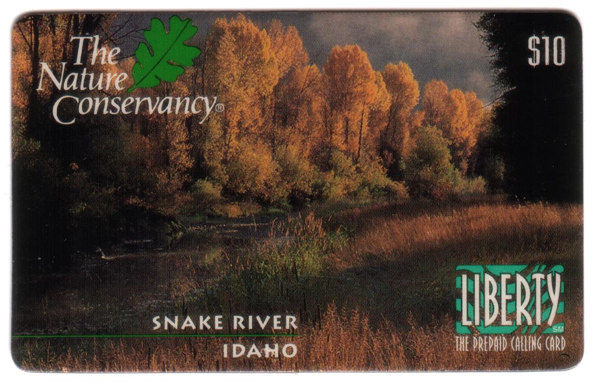 Overall, the card offers a clear tribute to the Snake River area in Idaho, combining environmental messaging with an aesthetic portrayal of one of America’s important natural water systems. It is a collectible phone card emphasizing support for non-profit environmental organizations and the preservation of natural habitats.