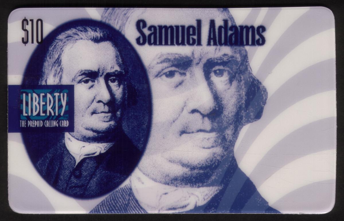 No other imagery or graphics are present beyond the portrait and the associated textual information. This card serves as a tribute to Samuel Adams and his role in American history, intended for collectors focused on historical and political figures of the United States.