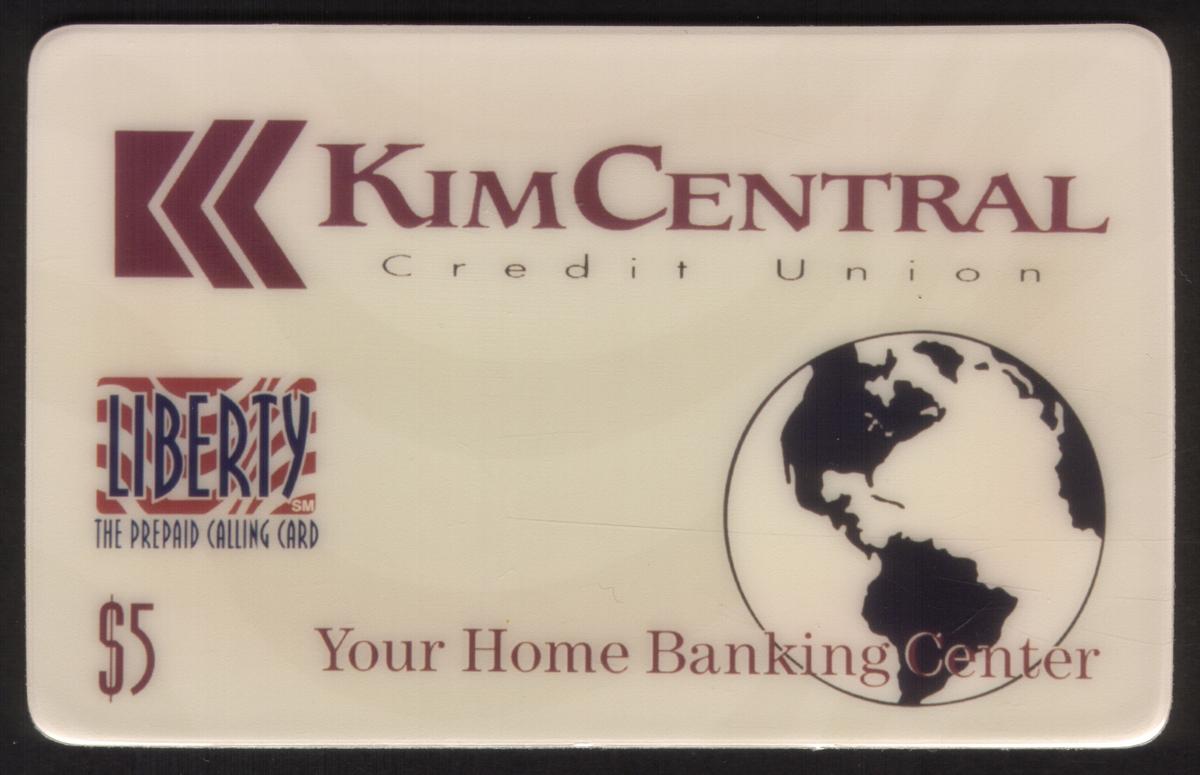 The card’s primary visuals focus on its role as a promotional item from a financial institution. It integrates elements related to banking, lending institutions, and savings-and-loan companies. The global motif suggests an emphasis on international finance or the broad reach of Kim Central Credit Union’s services. The text and logos are clear and professionally rendered, consistent with marketing materials from a banking entity.