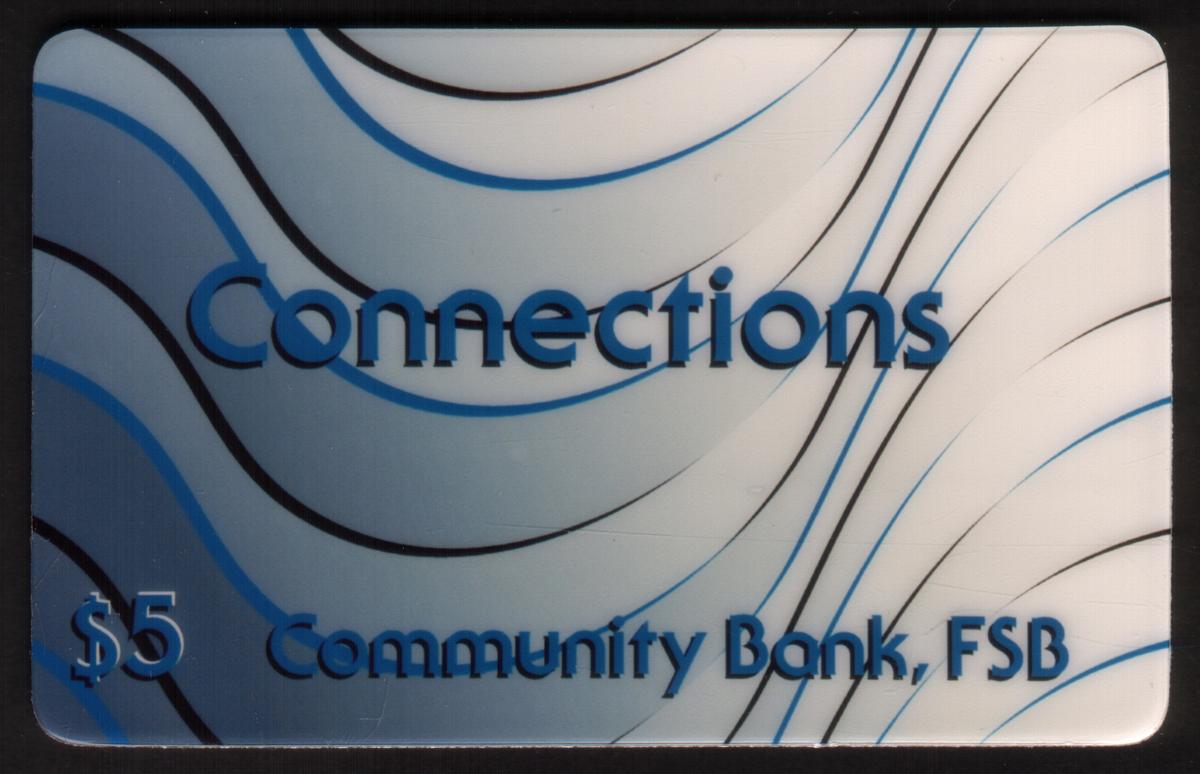 The card’s front highlights professional and corporate aesthetics consistent with financial institutions aiming to promote their brand identity. It includes the Connections Community Bank name to identify the issuer and solidify its connection with banking and lending activities. The presence of these elements firmly situates the card’s purpose in the realm of banking and loan services rather than retail or entertainment uses. The background and layout maintain a clean and formal look typical of cards used in financial promotions.