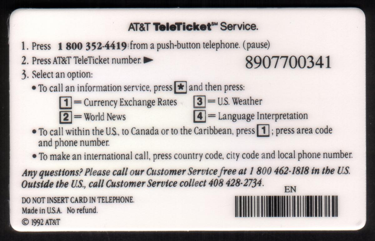 Since we have the world's largest inventory of USA phonecards for collectors, you will not necessarily receive the identical serial/batch/PIN number that we have scanned/pictured.