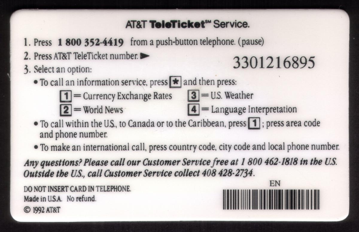 Since we have the world's largest inventory of USA phonecards for collectors, you will not necessarily receive the identical serial/batch/PIN number that we have scanned/pictured.