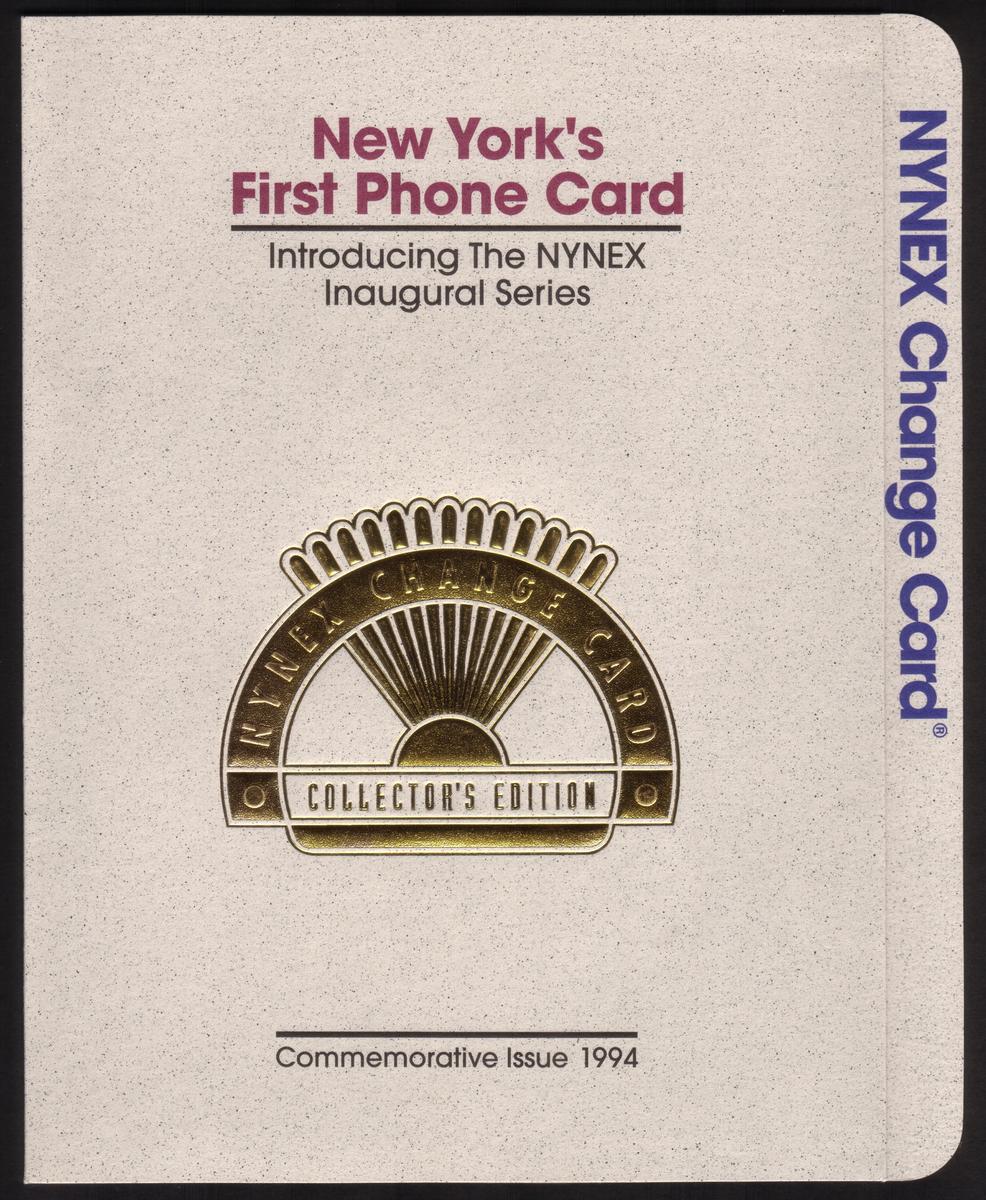These collectible phone cards are part of the 1994 Inaugural Series by NYNEX, showcasing iconic aspects of New York City. Each card features a prominent yellow NYNEX public phone on the left or right side, set against photographic and illustrated backgrounds representing different themes. The cards include both a monetary value and the inscription "NYNEX CHANGE CARDâ„¢ INAGURAL SERIES" along the bottom edge.