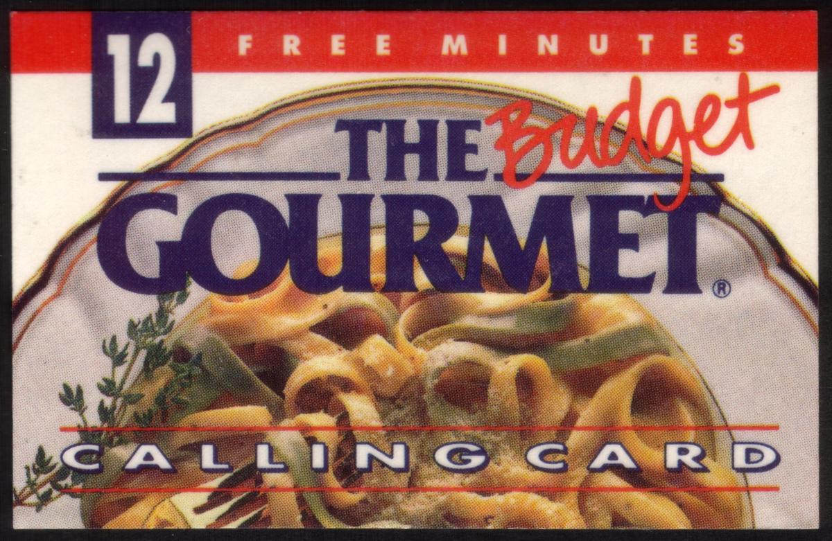 This collectible phone card is a promotional item related to frozen foods and meal brands. It is specifically tied to the "12m Promo: Budget Gourmet Pasta Dish," clearly indicated on the card. The card features an interactive telephone element, implying it can be used for making phone calls while also serving as a collectible. The branding "Budget Gourmet" is prominent, connecting it directly to a line of frozen meal products.