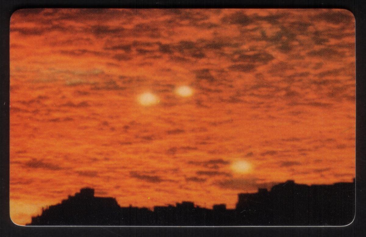 Set of phone cards featuring vintage UFO images from around the world, showcasing mysterious crafts, alien sightings, and extraterrestrial phenomena. |