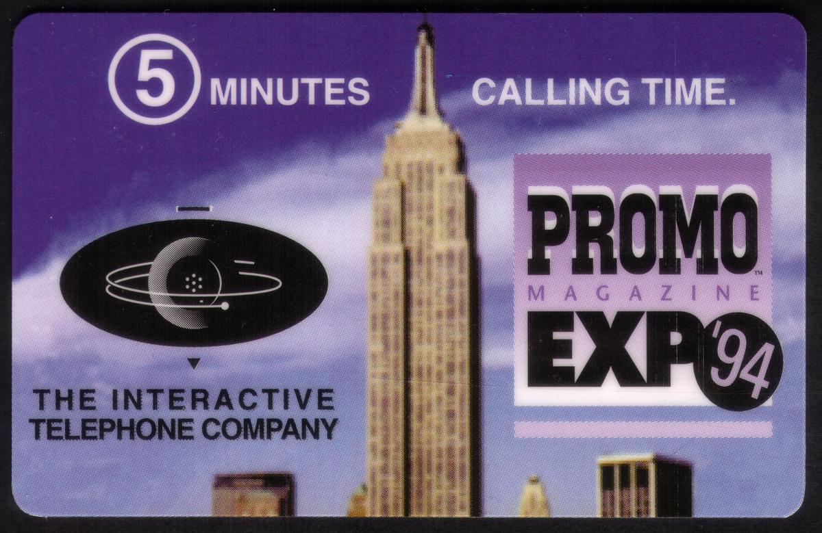 At the top right corner of the card, there is a small logo containing the words "Interactive Telephone," indicating a connection to telecommunication services. The card also includes the text "Empire State Building 5m Promo Magazine Expo '94," clearly referencing an event in 1994 tied to a promotional magazine expo. This places the card as a promotional item linked to that specific event, emphasizing the theme of skyscrapers and notable buildings or structures.