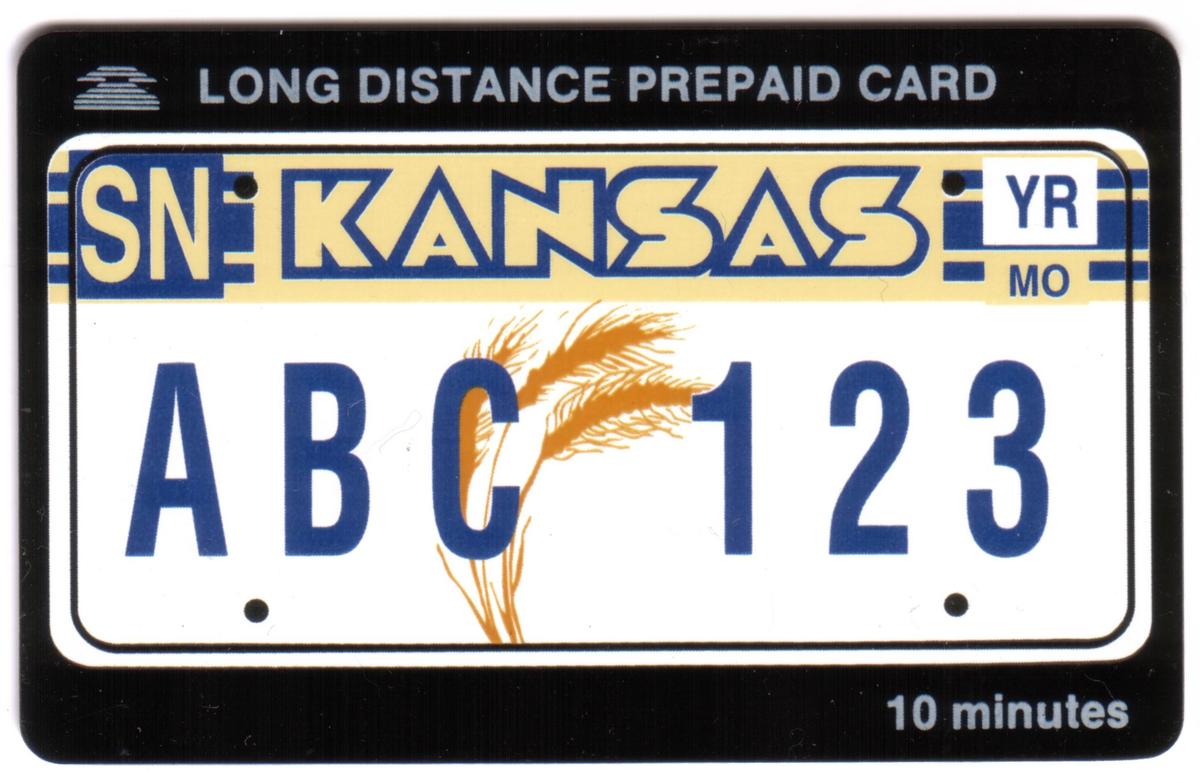This collectible phone card features a design centered on Kansas, a state in the Midwestern United States. The main visual element is a detailed illustration of wheat plants, symbolizing the importance of grains and agriculture in Kansas. The wheat stalks are prominently displayed against a soft background that enhances their golden color. This imagery reflects the state's strong ties to farming and grain production.