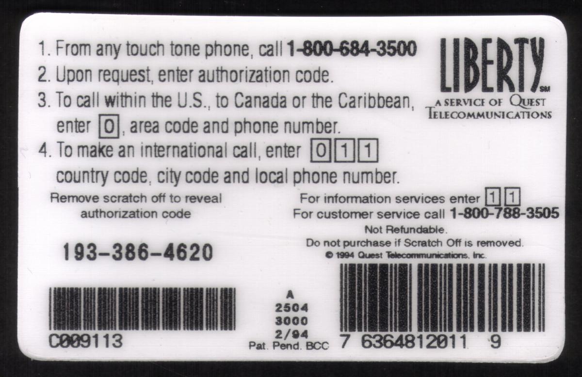 Since we have the world's largest inventory of USA phonecards for collectors, you will not necessarily receive the identical serial/batch/PIN number that we have scanned/pictured.