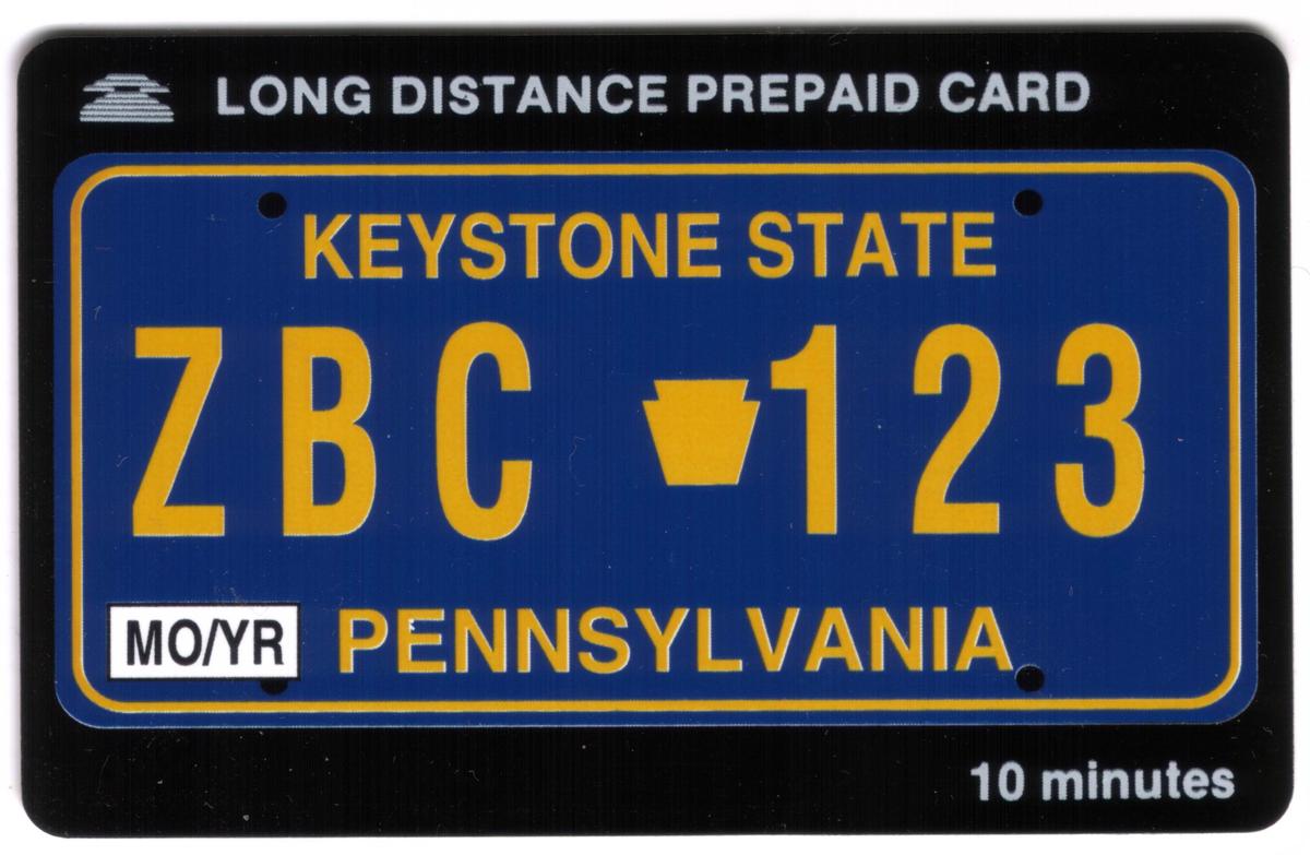 Overall, this phone card combines distinct visual elements tied to Pennsylvania’s identity within the United States. The use of official colors and the panther helps reinforce the card’s collectible appeal, especially for those interested in regional Americana and automotive memorabilia. The card carries no other identifying marks or names beyond those related to its Pennsylvania license plate tribute.
