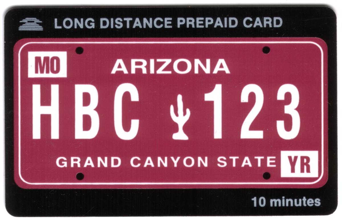 This collection includes a set of collectible long distance prepaid phone cards each designed to resemble a unique license plate from a different U.S. state or district. The cards display varied and vivid license plate designs with corresponding state names, slogans, and unique graphic elements that represent each state.