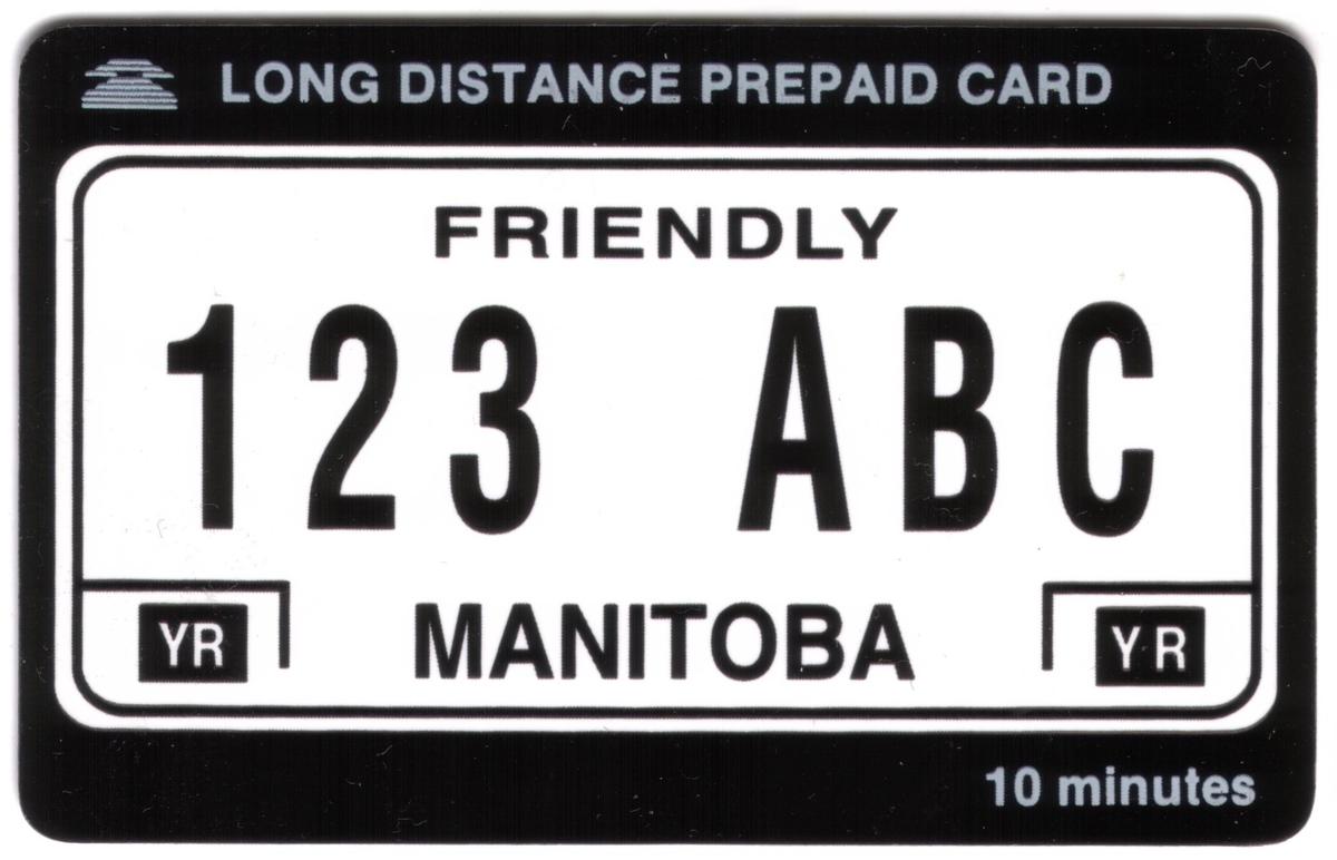The card’s layout incorporates the official colors and design elements associated with Manitoba, one of Canada’s provinces. The text "10m Manitoba (Canada) License Plate Card" indicates the card’s usage value of 10 minutes for telephone services. The card is marked with the brand "WorldCom," a well-known telecommunications company, confirming its purpose as a prepaid phone card.