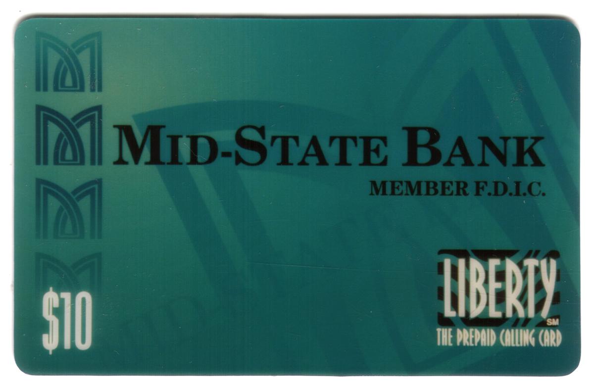 Overall, this card reflects a typical promotional or functional item issued by financial entities, displaying key branding elements and a clear association with Mid-State Bank’s financial services.