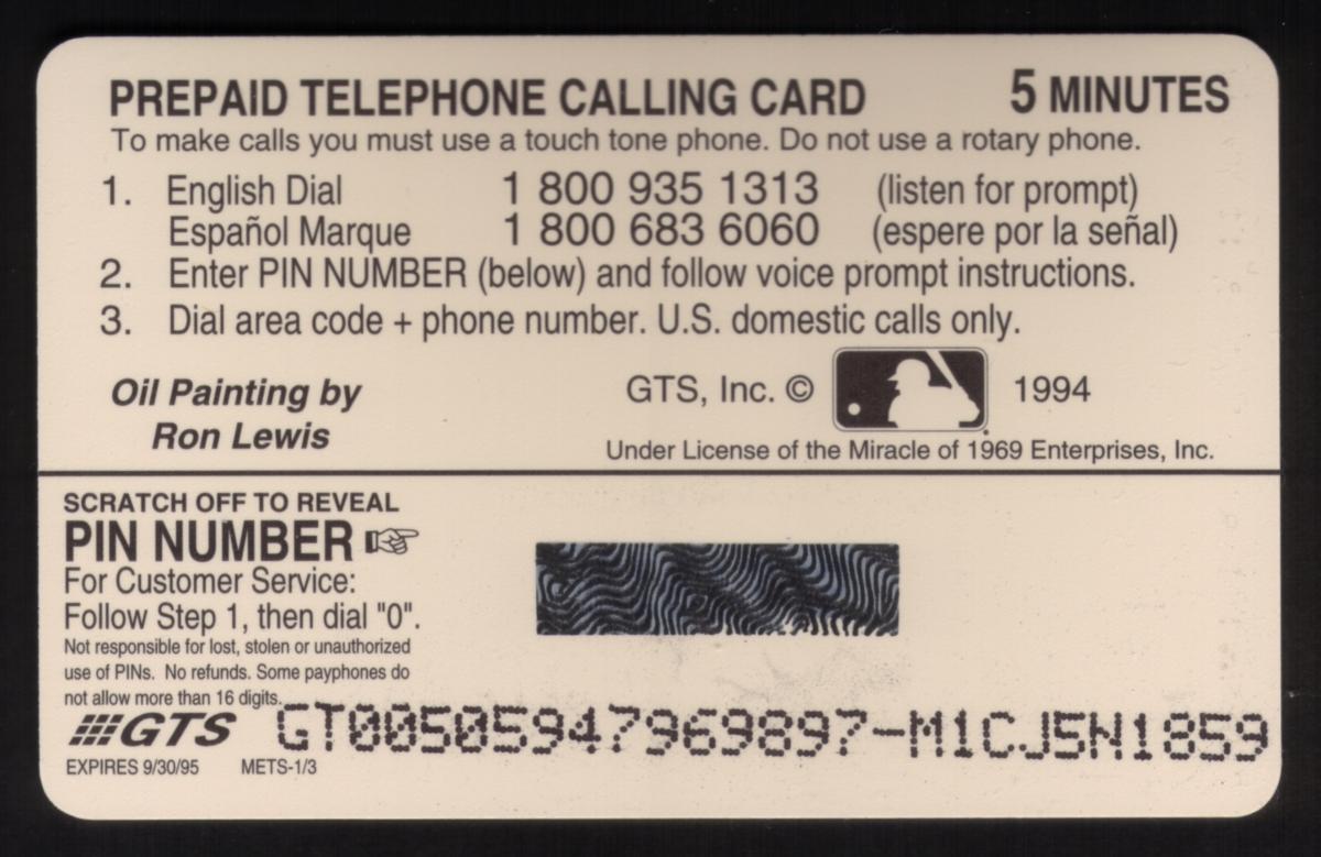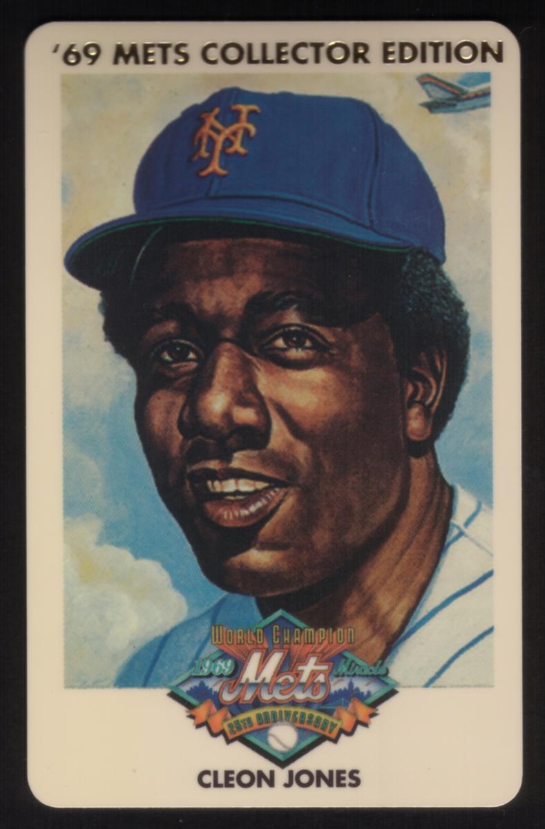 The card is issued by Global Tel. Solutions and celebrates the sports theme of Major League Baseball, specifically recognizing the achievement of the 1969 New York Mets team through the depiction of Cleon Jones.