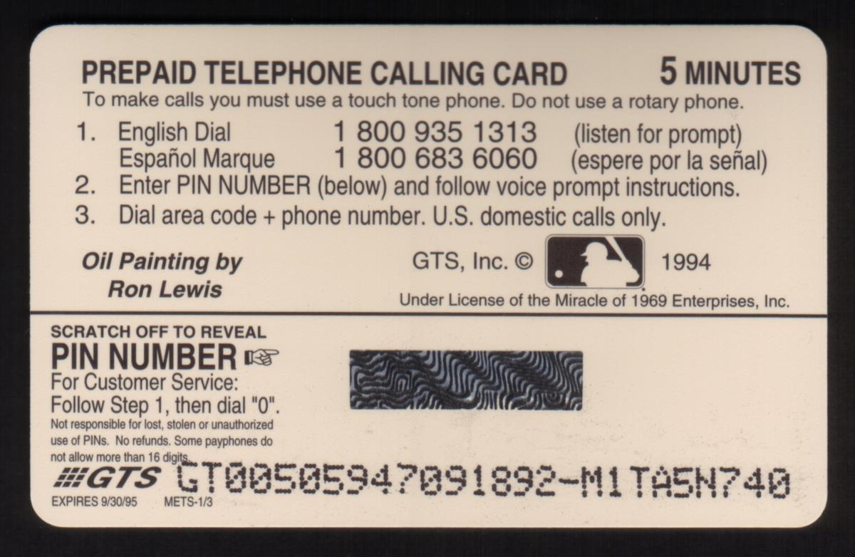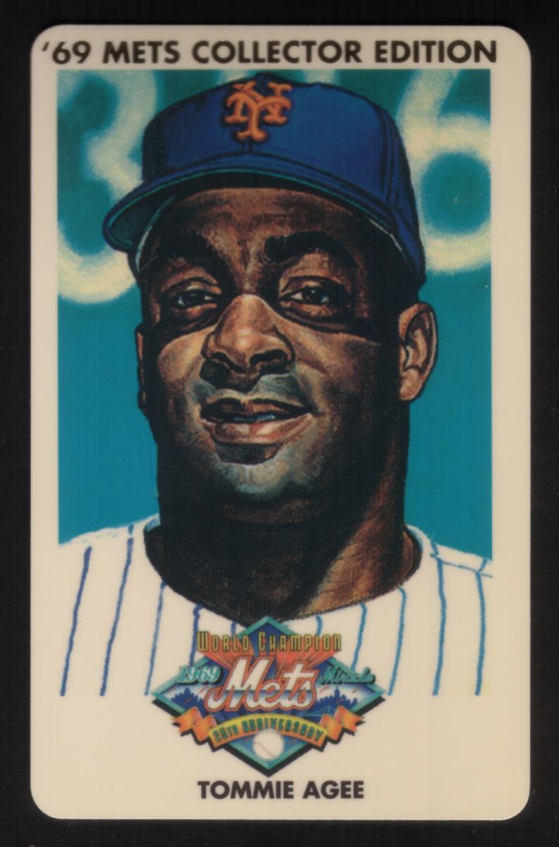 This phone card is issued by Global Tel. Solutions and is associated with Major League Baseball (MLB) and the sport of baseball, specifically commemorating the World Series Champion Mets of the late 1960s. It serves as a collectible tribute to Tommie Agee and the historic 1969 Mets team.