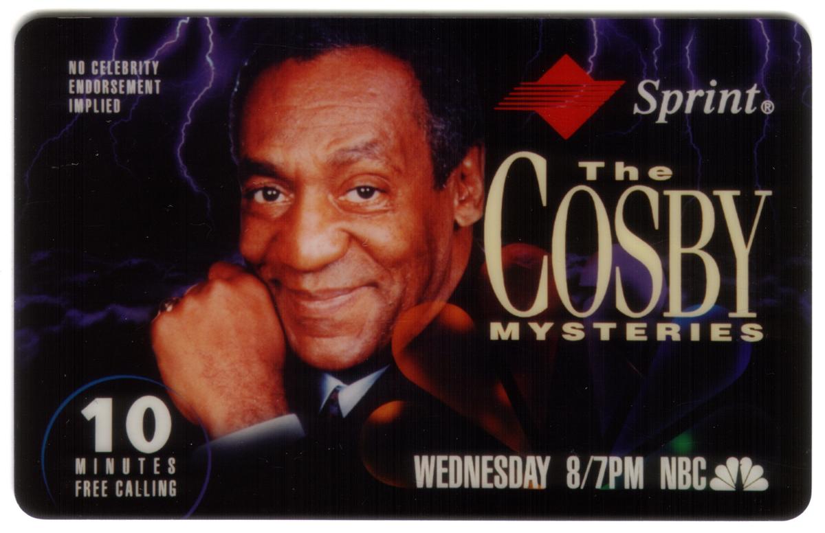 The card also includes the title "The Cosby Mysteries" in a clear, bold font, establishing its connection to the television series. The overall design incorporates elements related to entertainment and comedy television, consistent with NBC’s branding and the show's genre. The word "Sprint" appears on the card, highlighting sponsorship or promotional partnership.