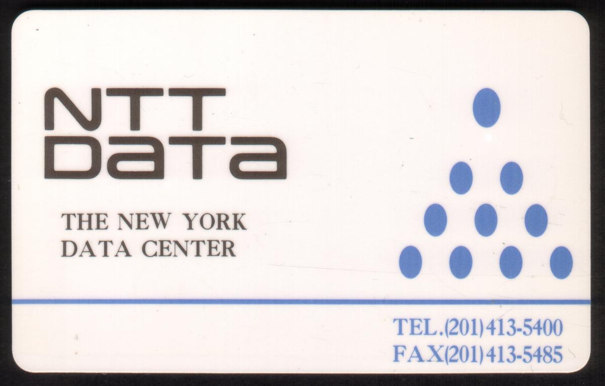No characters or additional imagery aside from text, logos, and graphic elements associated with NTT and data technology are present on the front of the card. The layout includes clear branding of NTT Data and references The New York Data Center, making it a collectible item that relates to corporate IT services and data management.