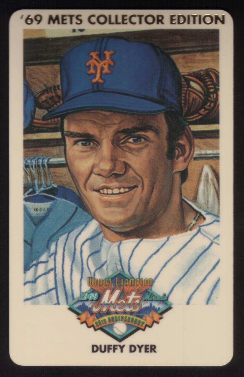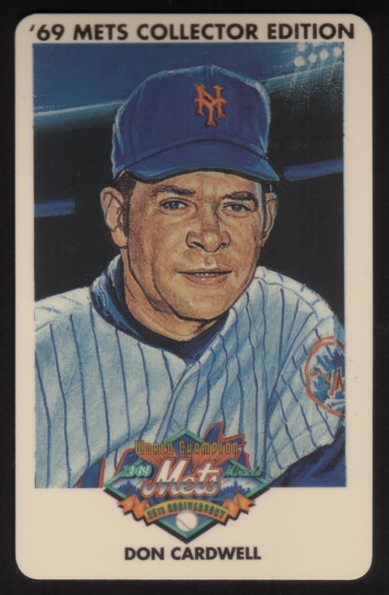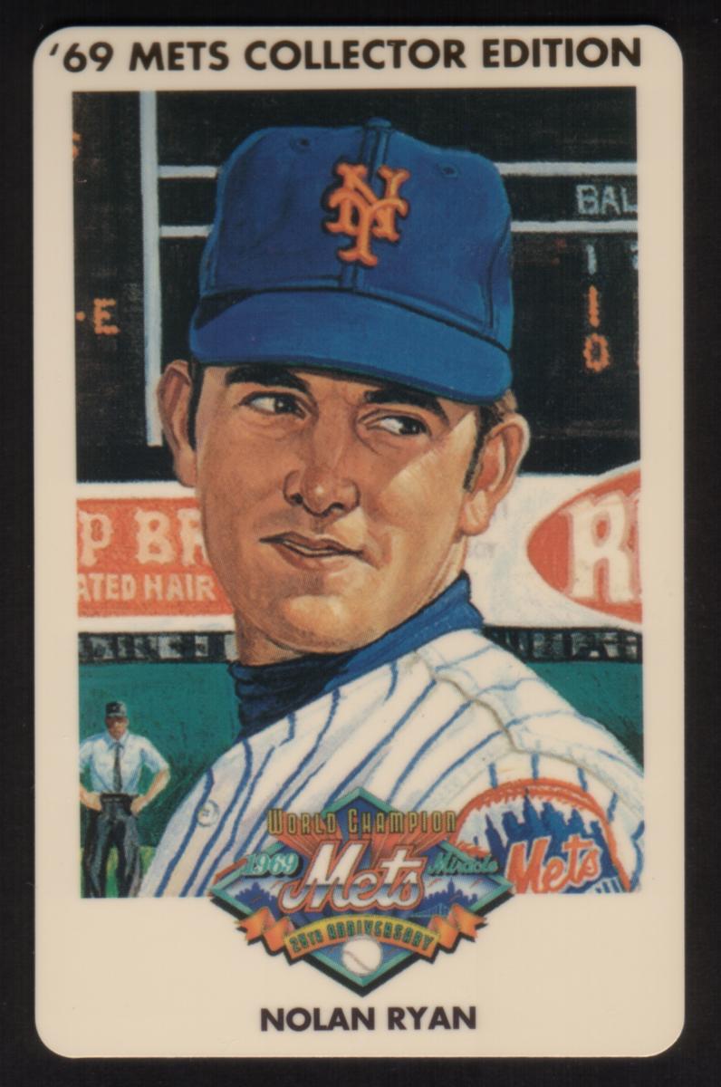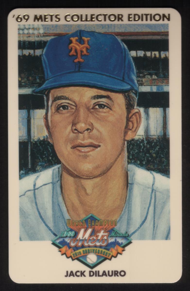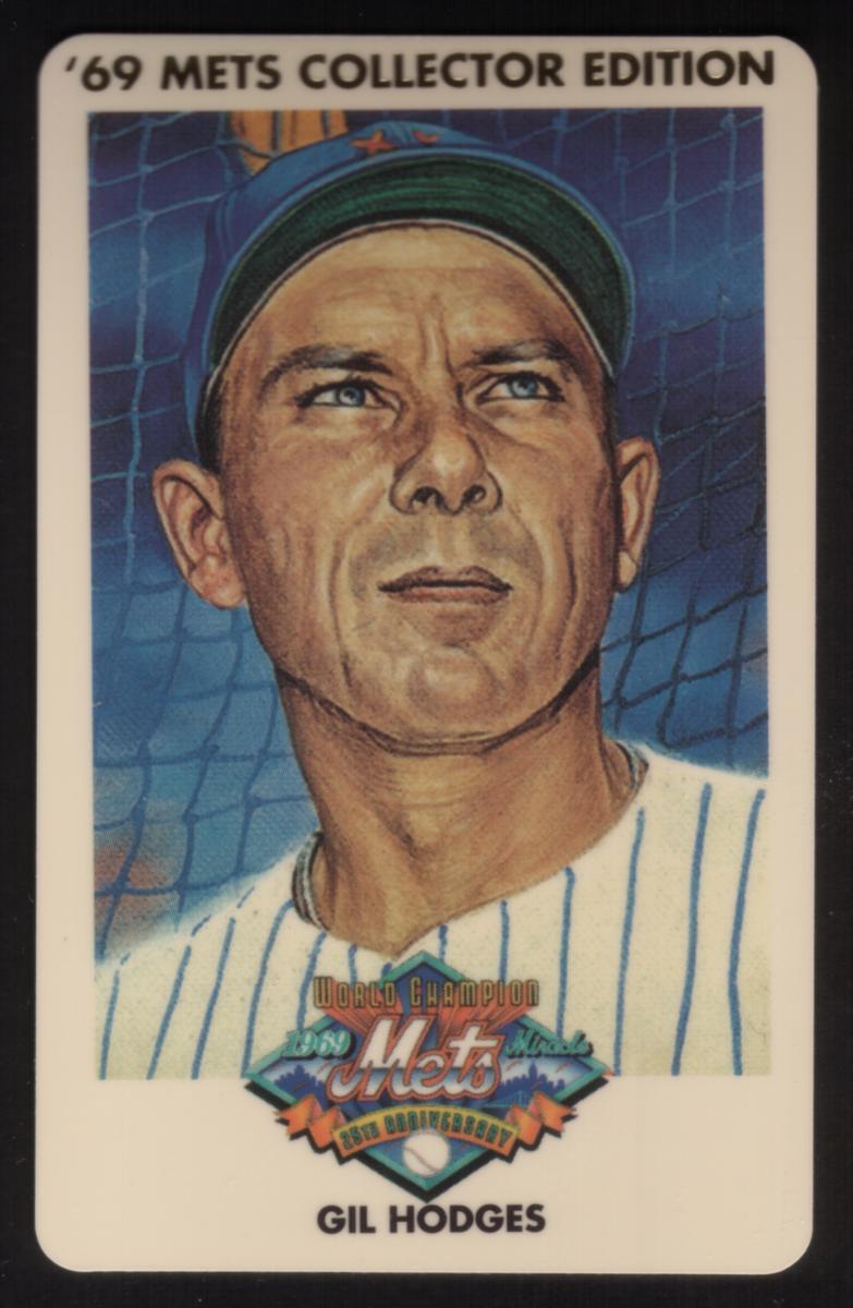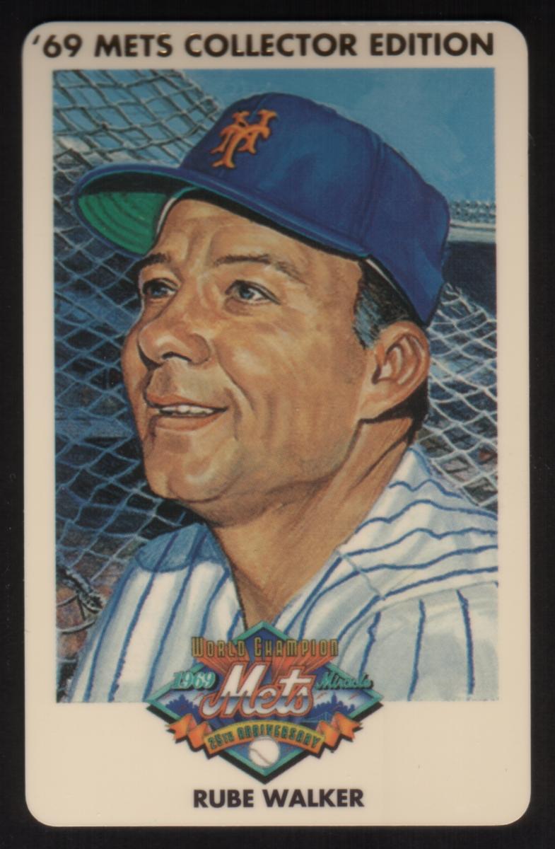 This collection features 1969 Mets Collector Edition collectible phone cards celebrating the 1969 New York Mets baseball team's 25th Anniversary and World Champion status. Each card includes a detailed illustration of a baseball player or coach associated with the Mets, depicted in a variety of poses mostly wearing Mets caps and pinstriped uniforms. Every card has the title "'69 METS COLLECTOR EDITION" at the top and the name of the featured individual printed at the bottom. The Mets logo is incorporated in the graphic design on each card, along with a colorful emblem that reads "World Champion 1969 Mets Miracle 25th Anniversary."