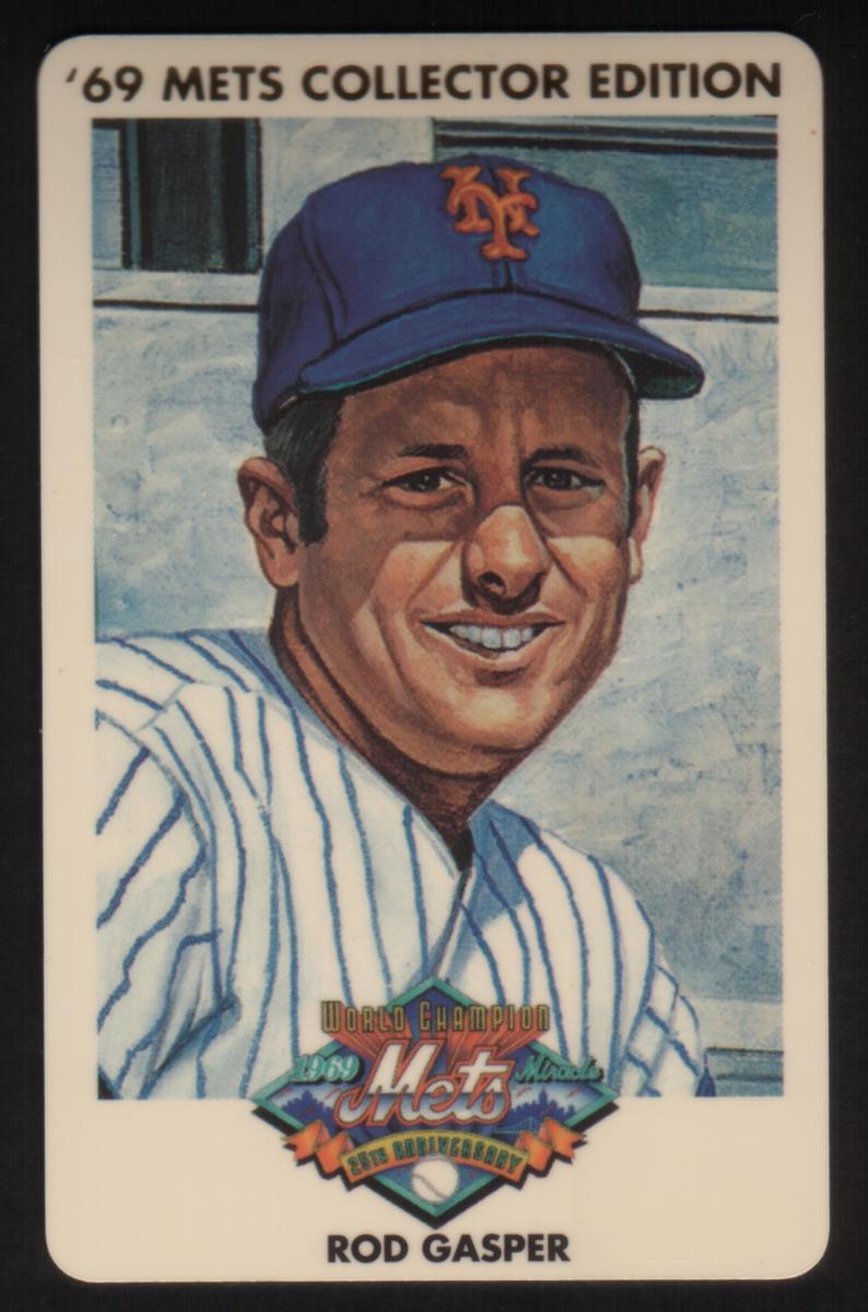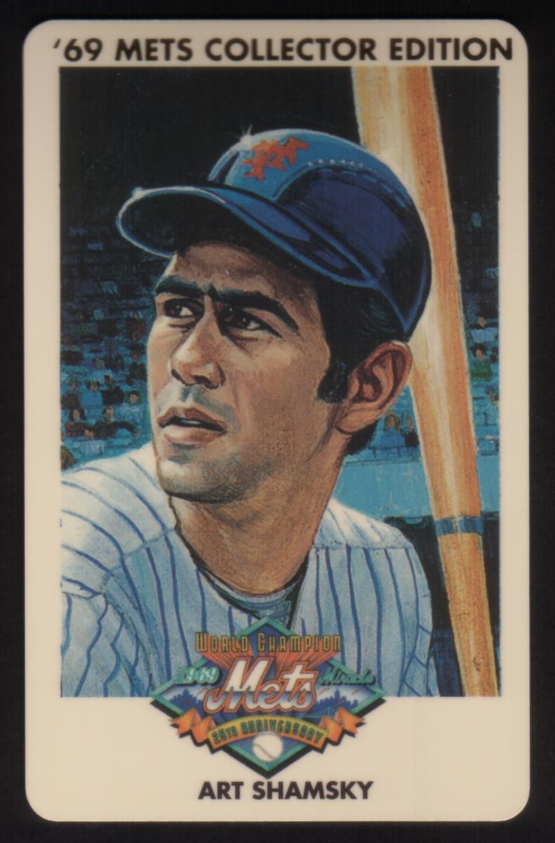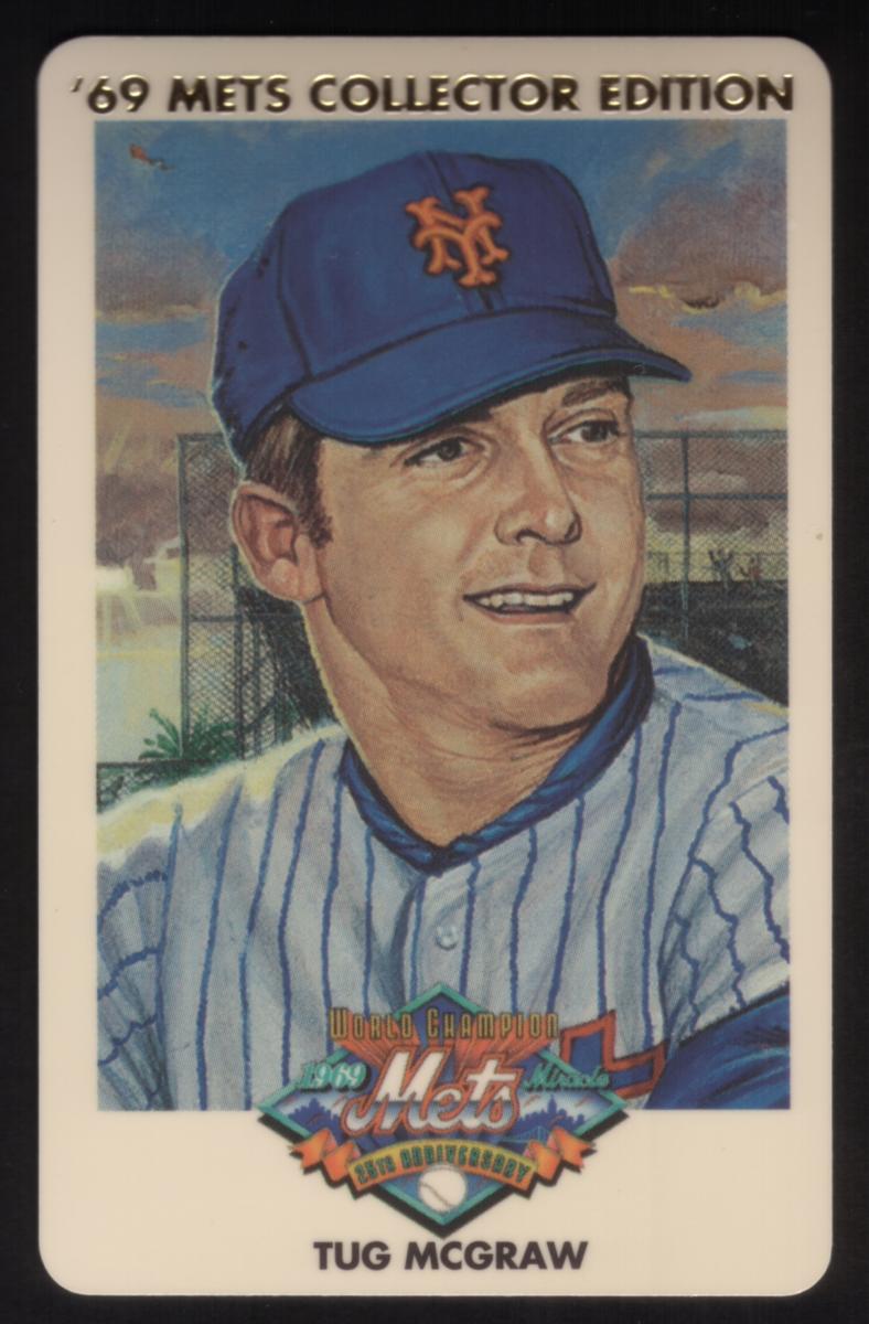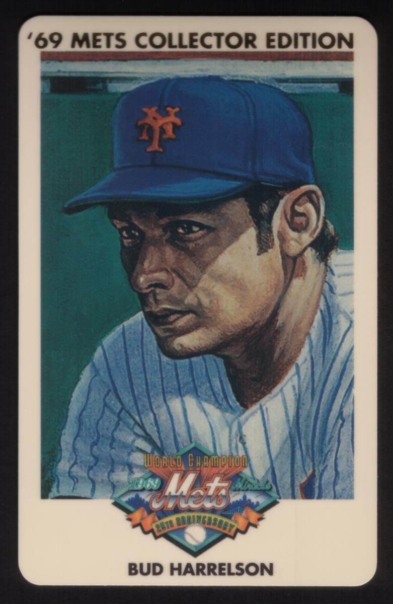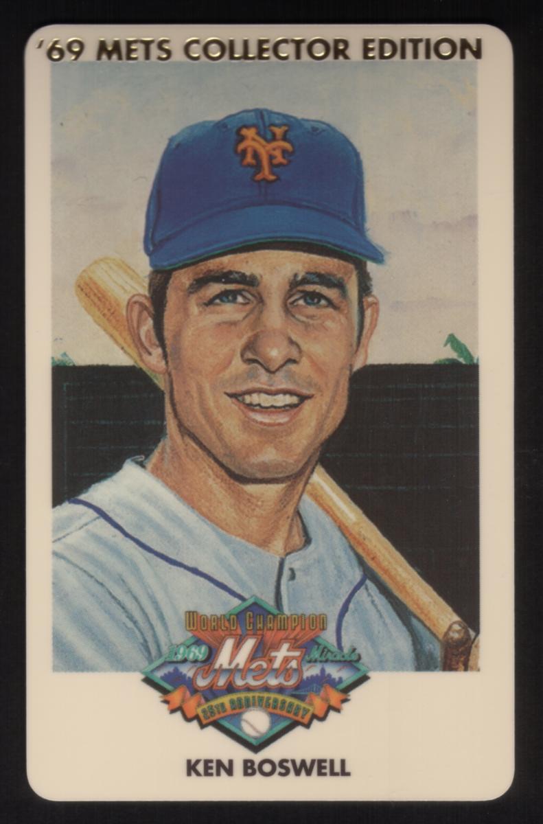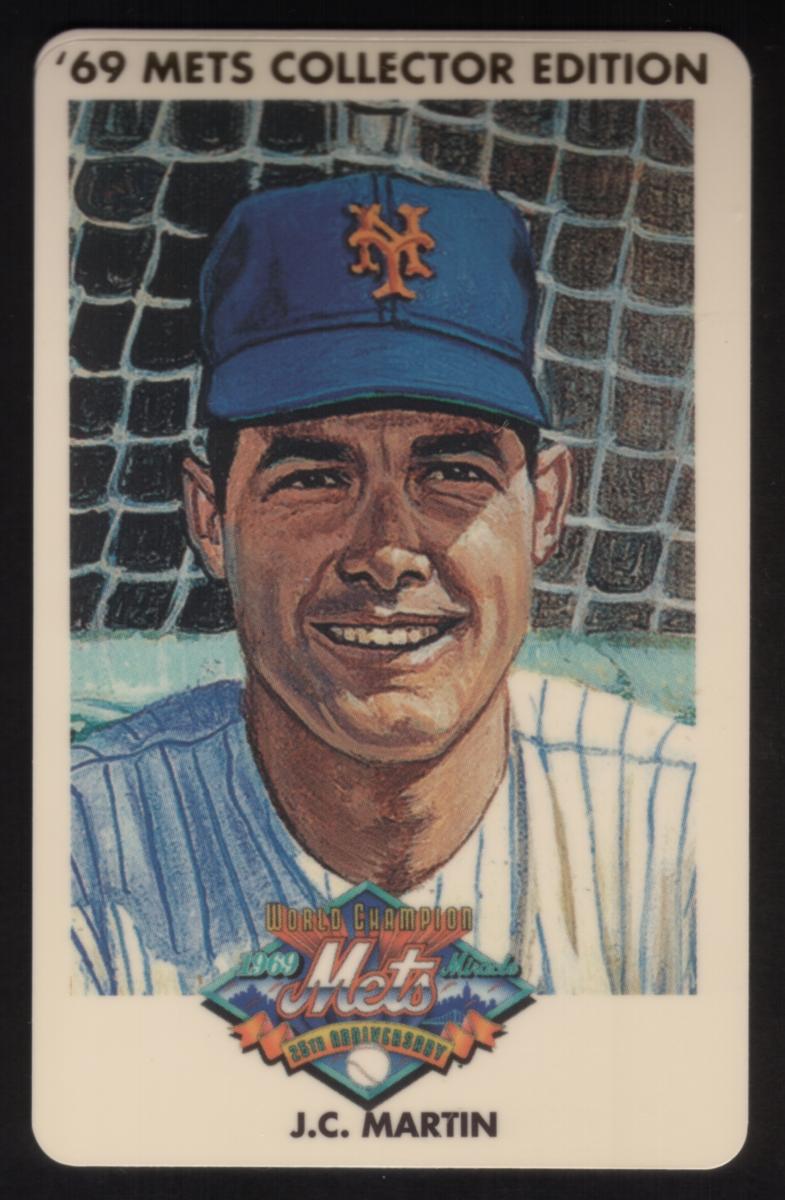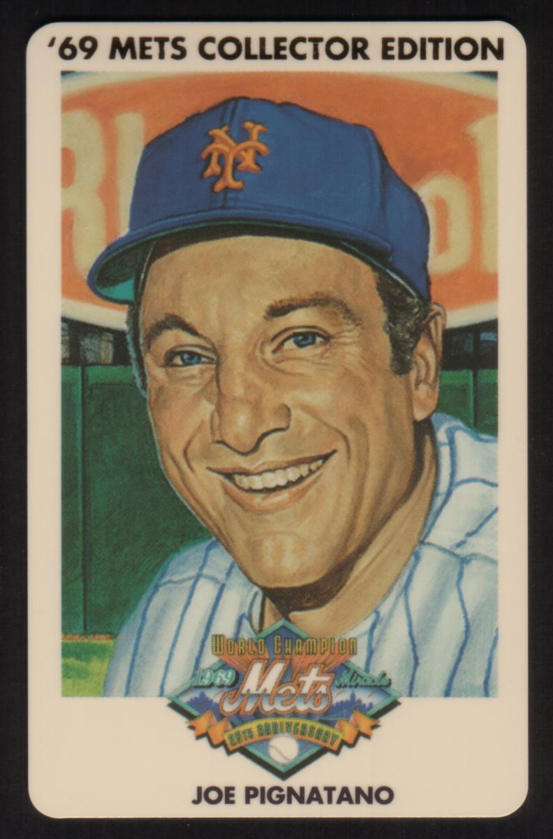 This collection features 1969 Mets Collector Edition collectible phone cards celebrating the 1969 New York Mets baseball team's 25th Anniversary and World Champion status. Each card includes a detailed illustration of a baseball player or coach associated with the Mets, depicted in a variety of poses mostly wearing Mets caps and pinstriped uniforms. Every card has the title "'69 METS COLLECTOR EDITION" at the top and the name of the featured individual printed at the bottom. The Mets logo is incorporated in the graphic design on each card, along with a colorful emblem that reads "World Champion 1969 Mets Miracle 25th Anniversary."