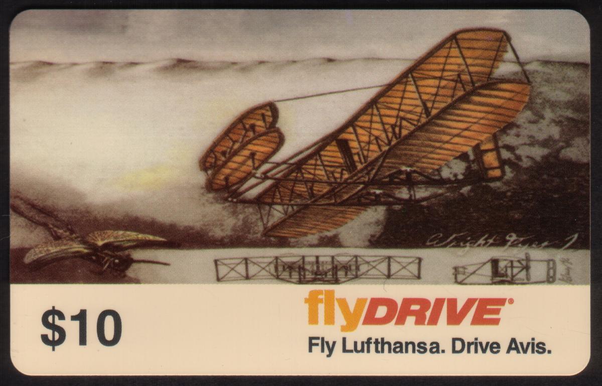 $10. FlyDrive: 'Fly Lufthansa. Drive Avis.' Biplane - With Barcode