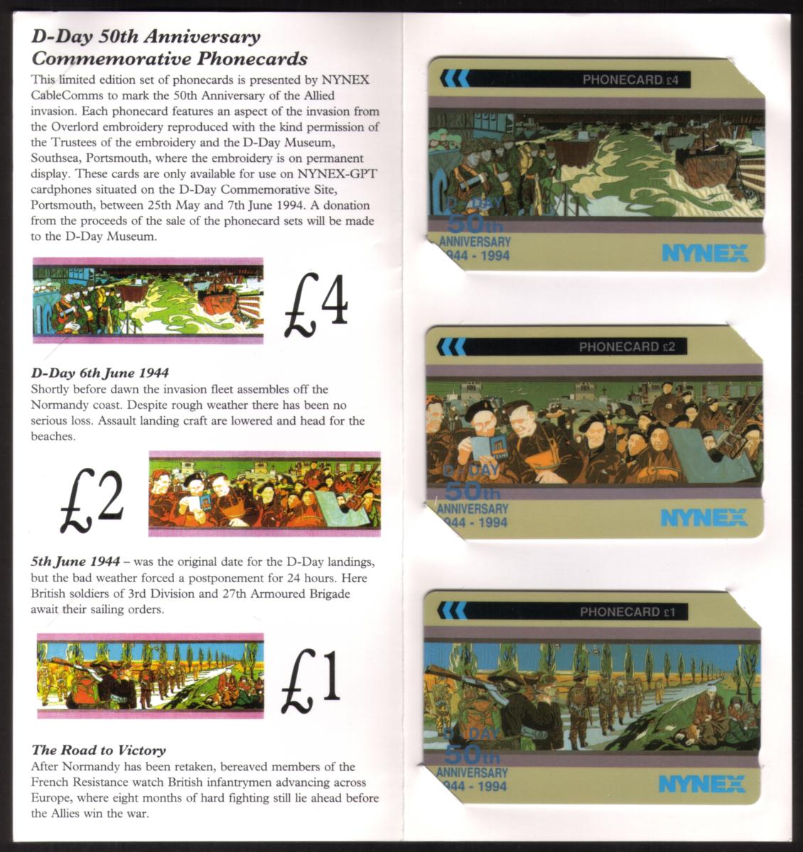 | 50th Anniversary of D-Day NYNEX CableComms Ltd. (GPT UK): Set of 3 |