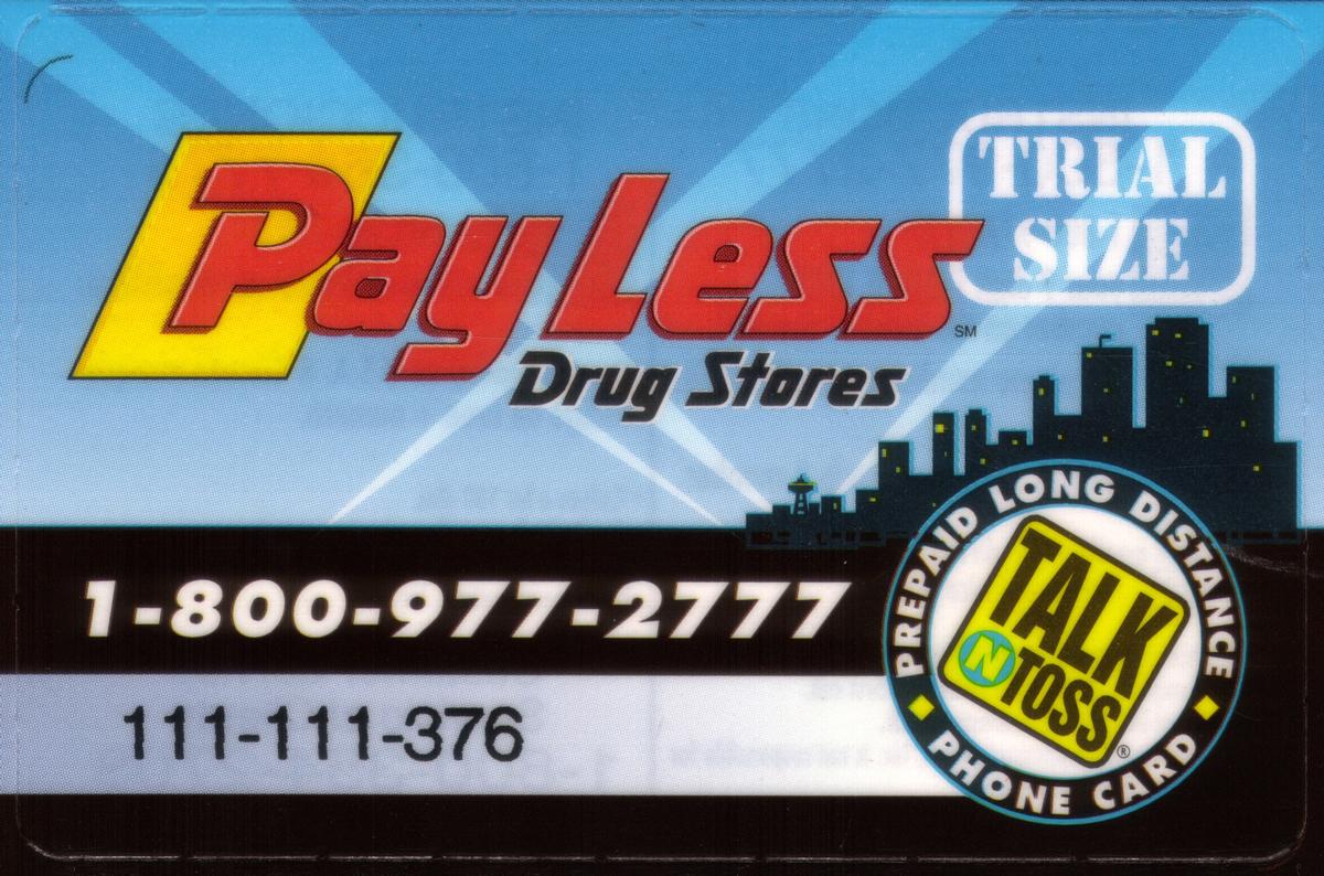 This collectible chip card is part of materials related to promotionals for drug store chains and features no other corporate or additional logos besides those mentioned. The focus remains strictly on 10 Minute Payless Drugs, Talk N Toss, and Bottom Line Tech, with no supplementary visual elements altering that message.