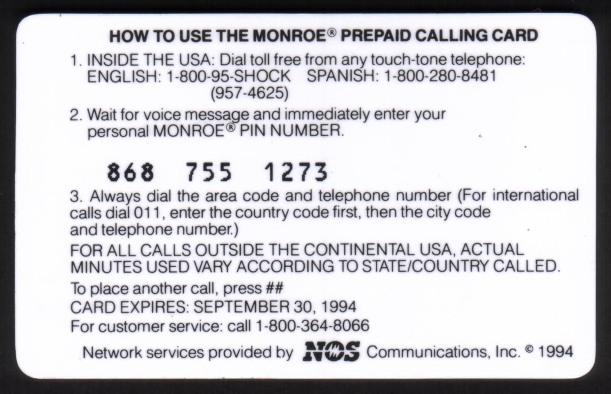 Since we have the world's largest inventory of USA phonecards for collectors, you will not necessarily receive the identical serial/batch/PIN number that we have scanned/pictured.