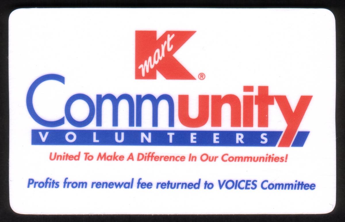 The imagery on the card includes the name “VOICES committee,” connecting it to Kmart’s internal or related groups focused on volunteer activities. The design integrates the concept of promotional community service under the umbrella of department stores, emphasizing support toward non-profit causes. The overall presentation aligns with Kmart’s branding and their commitment to community involvement.
