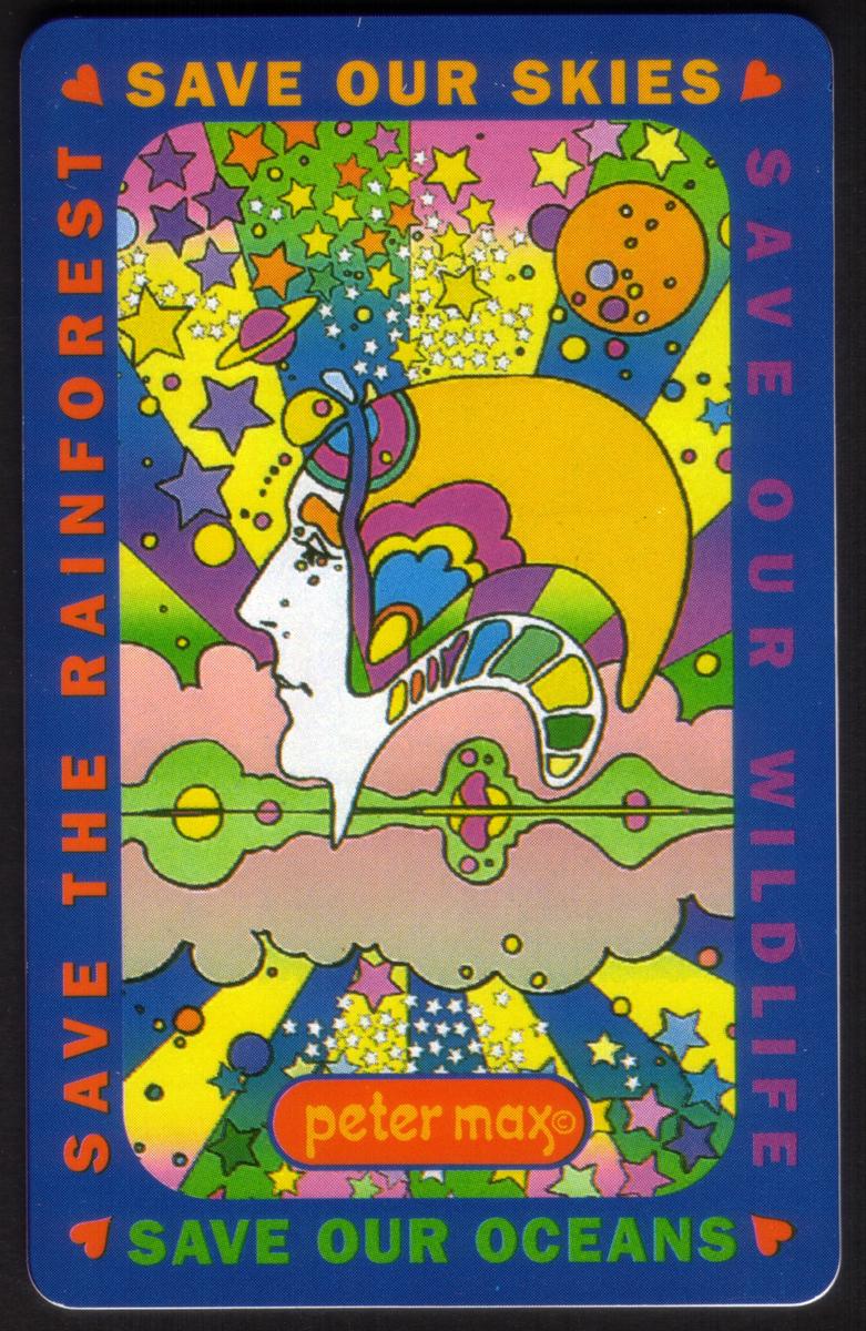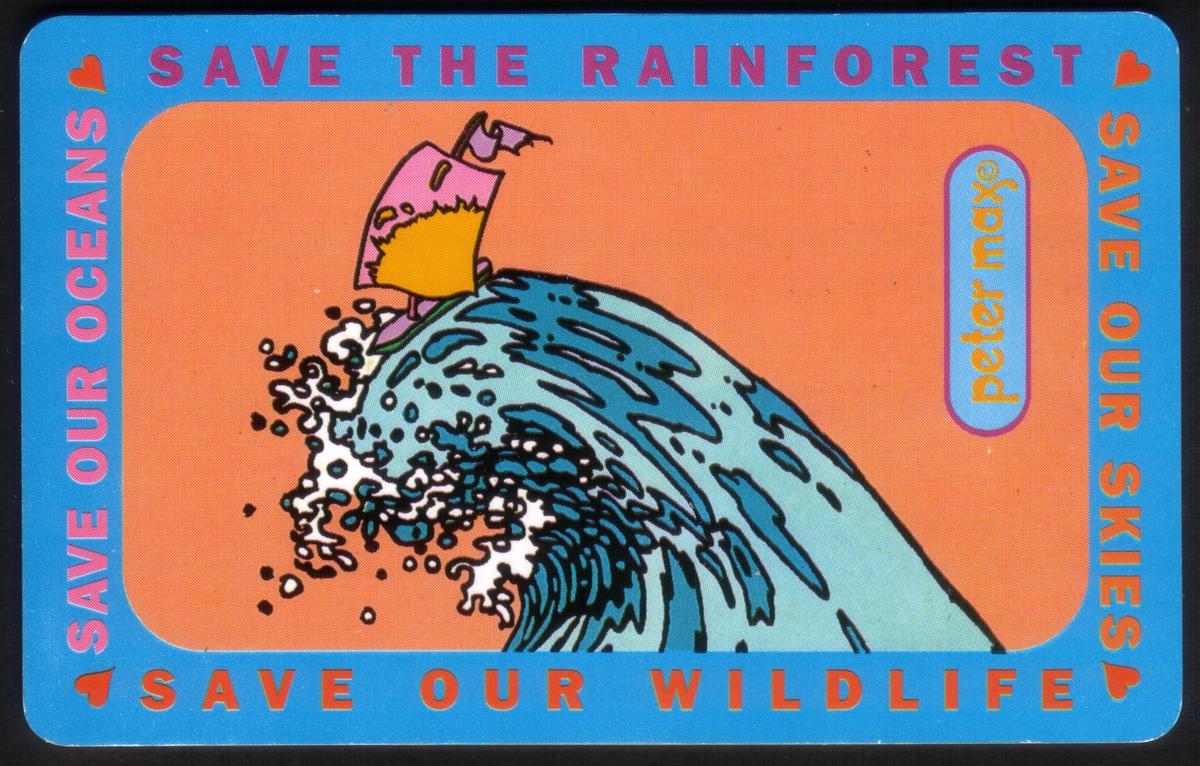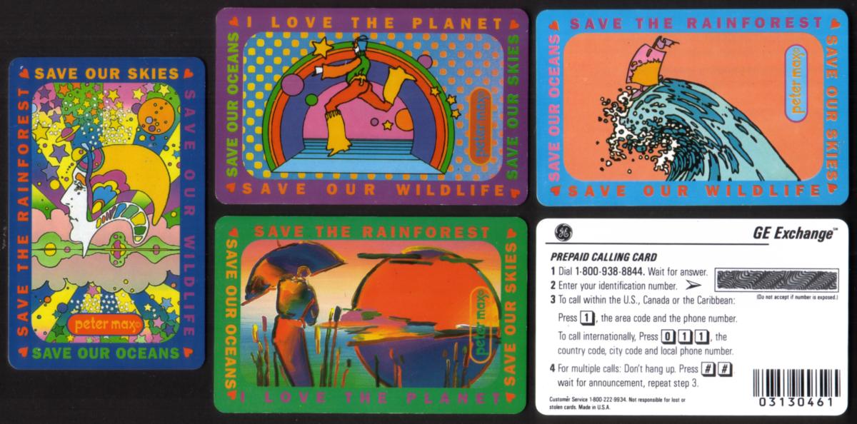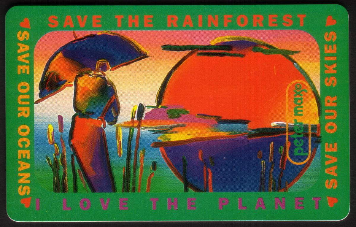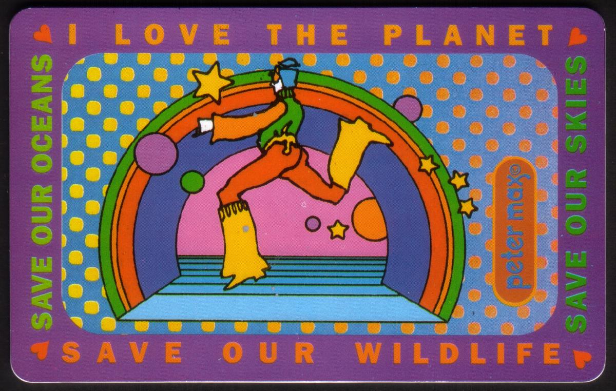 Each phone card from this set is designed to merge artistic expression with ecological advocacy, making them collectible items that celebrate both art and environmental consciousness. The set contains four cards, each unique in theme yet unified by the overall environmental message and Peter Max’s distinct artistic vision.