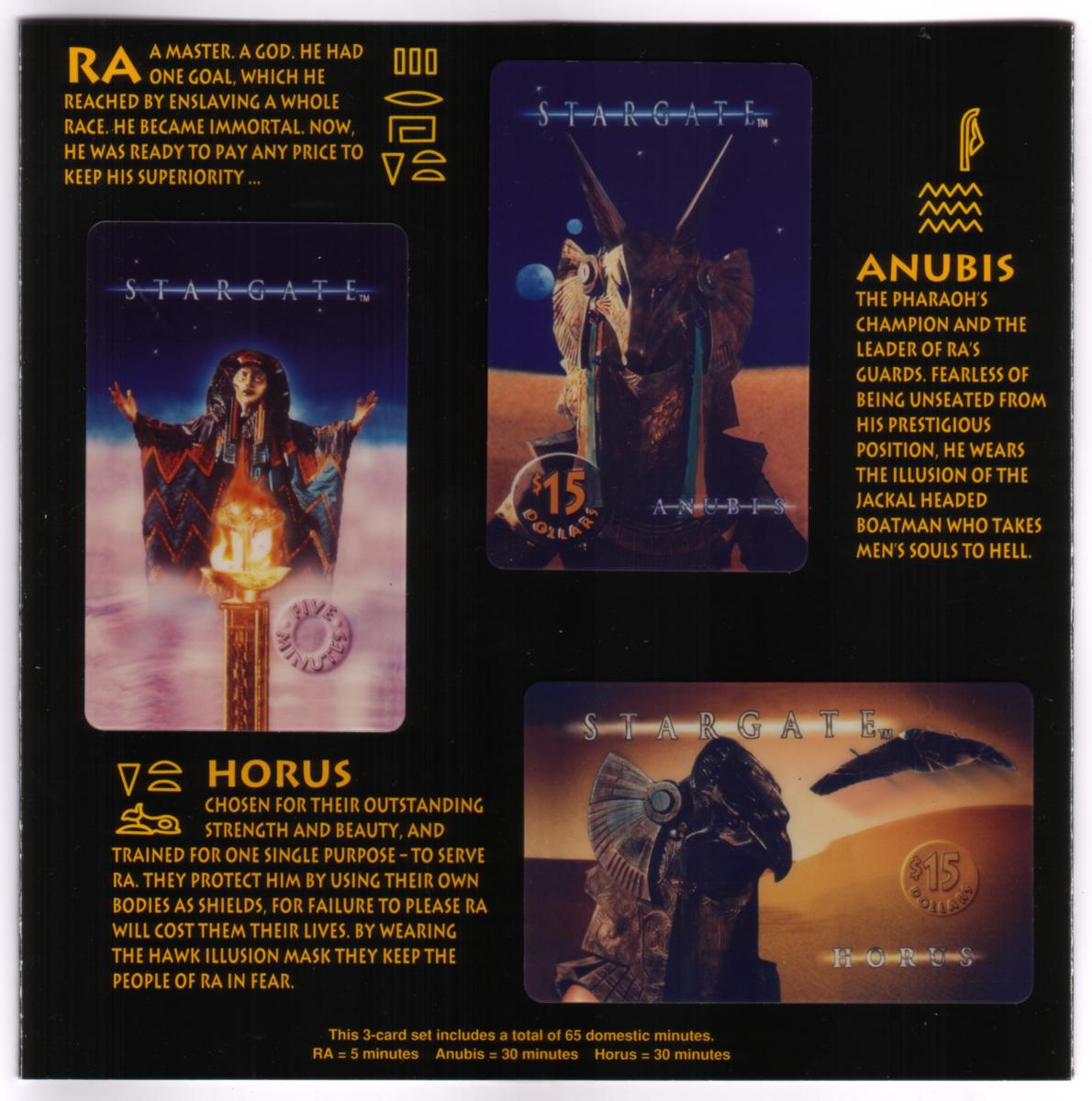 Overall, this set commemorates the *Stargate* film with collectible phone cards issued by Phone Line USA. The cards serve both as functional phone cards and as memorabilia featuring the main characters and the iconic Stargate portal from the film.