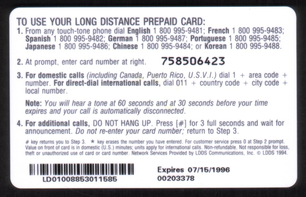 Since we have the world's largest inventory of USA phonecards for collectors, you will not necessarily receive the identical serial/batch/PIN number that we have scanned/pictured.