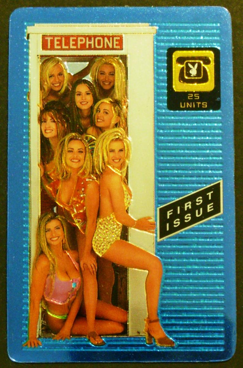 The overall design of the phone card blends the classic style of a telephone booth with the iconic imagery associated with Playboy brand models. The card’s elements are printed clearly and are easy to read, making it a visually appealing collectible item that connects Playboy’s entertainment themes with telecommunications memorabilia.