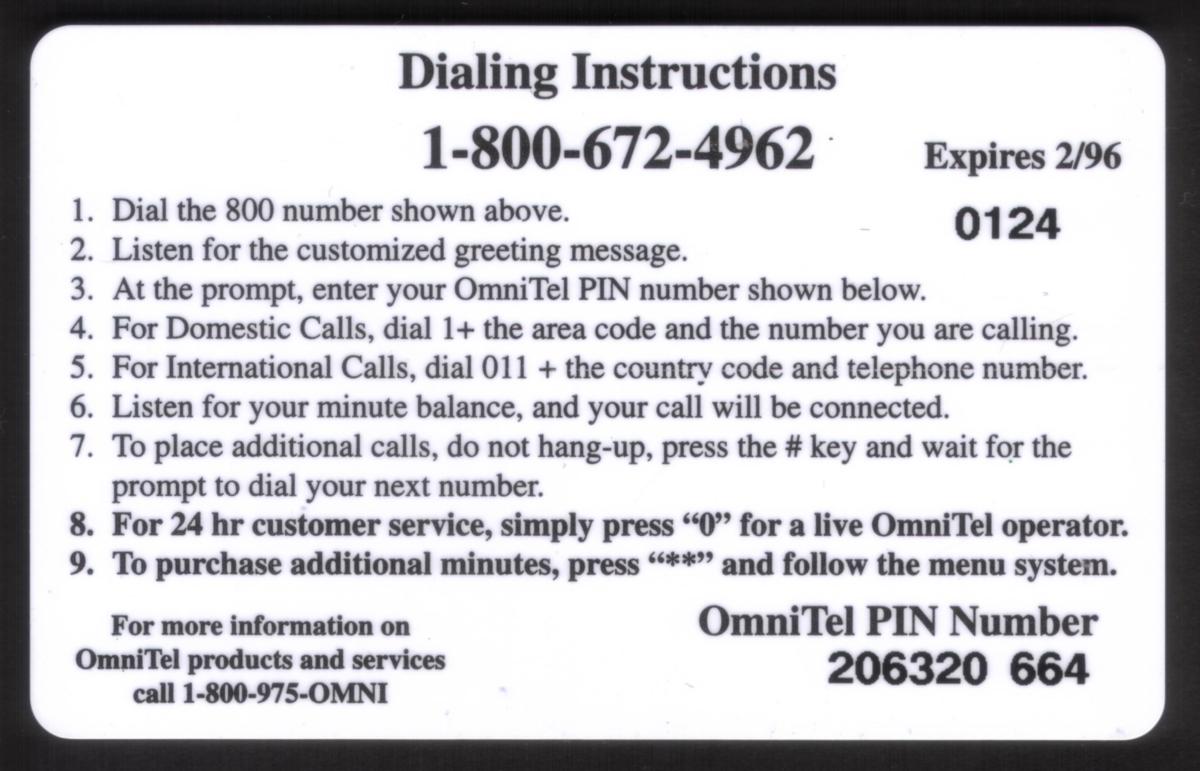 Since we have the world's largest inventory of USA phonecards for collectors, you will not necessarily receive the identical serial/batch/PIN number that we have scanned/pictured.