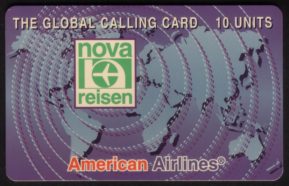 No other logos, trademarks, or numeric identifiers are visible on the front of the card. The combination of American Airlines and Nova Reisen names ties the card closely to the airline business and travel sector. The inclusion of the global map underscores the international scope of the companies represented.