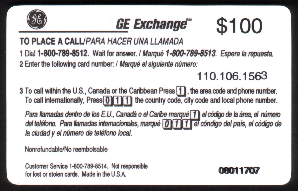 Since we have the world's largest inventory of USA phonecards for collectors, you will not necessarily receive the identical serial/batch/PIN number that we have scanned/pictured.