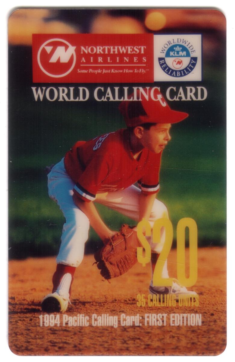 Set of three 1994 Northwest Airlines Pacific Calling Cards featuring Americana icons: baseball, Golden Gate Bridge, and Statue of Liberty, blending travel and culture. |