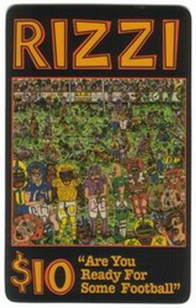 The card is associated with Teleworld International and includes the Sports: Football theme, merging elements of sports enthusiasm with Rizzi's signature artistic style. The composition combines various abstract and expressive figures, typical of Rizzi’s painting technique, creating a visually engaging interpretation of football culture.