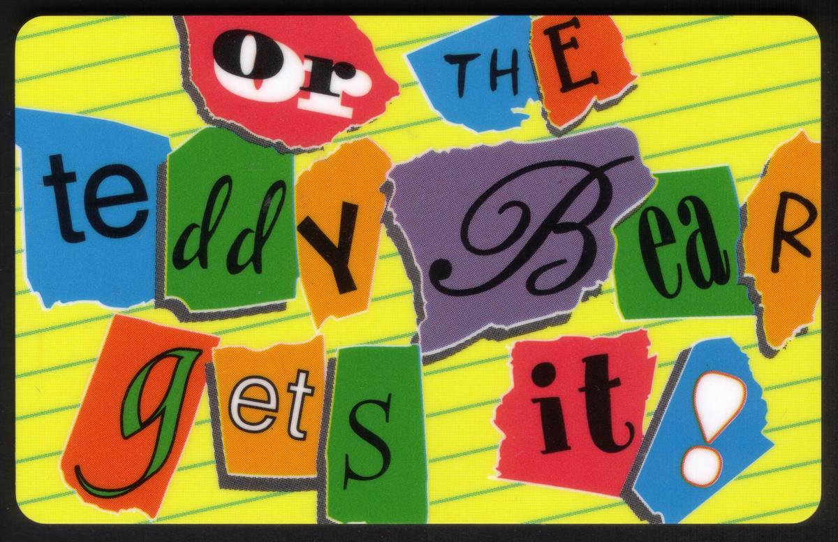 No other characters or locations are depicted on the card. The imagery and text work together to create a playful and lighthearted theme centered around the idea of a ransom note featuring teddy bears. The card is suitable for occasions where humor is appreciated, reflecting Hallmark’s style of greeting cards with a mix of whimsy and clever wordplay.