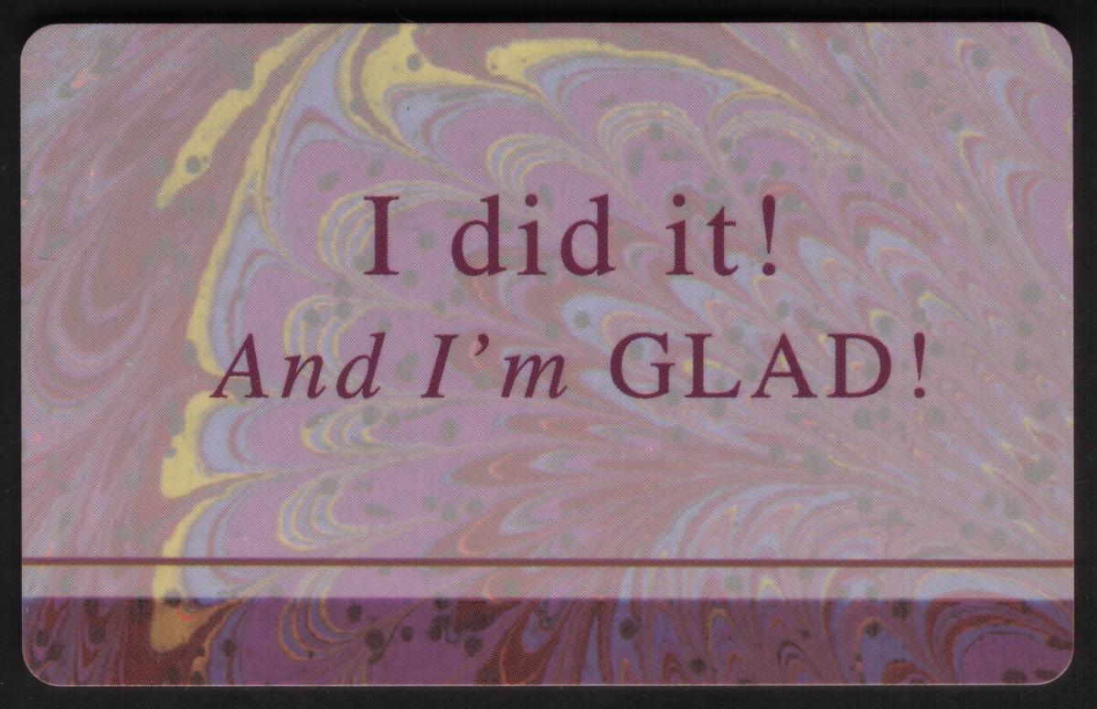 This collectible greeting card features an intricate paisley design with a theme centered on faith and fearlessness. The front of the card prominently displays the phrase "You Did It" in elegant lettering. Inside the card, the printed message states, "I Did It! And I'm Glad!" conveying a sentiment of accomplishment and joy. The card is intended as a congratulations card.