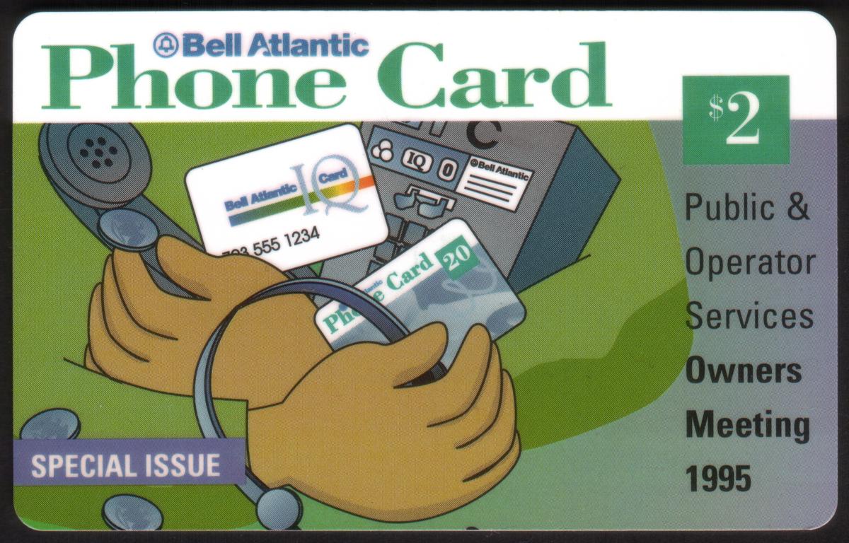 Overall, this phone card commemorates the 1995 Bell Atlantic Owners Meeting and serves as a collectible piece reflecting the telecommunications industry’s branding and promotional efforts during that period. The corporate trademarks and logos provide clear identification of the card’s issuer and purpose within the phone card collectible market.