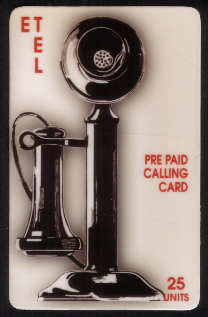 The card includes the text "et tel 25 Unit" and "E.T.Tel Communications," identifying it as related to E.T.Tel, a communications company. The integration of the text with the visual design highlights the collectible’s connection to telecommunications and artistic expression. The design merges the functionality of a phone card with elements of fine arts, making it a unique collectible item that appeals to both art enthusiasts and phone card collectors.