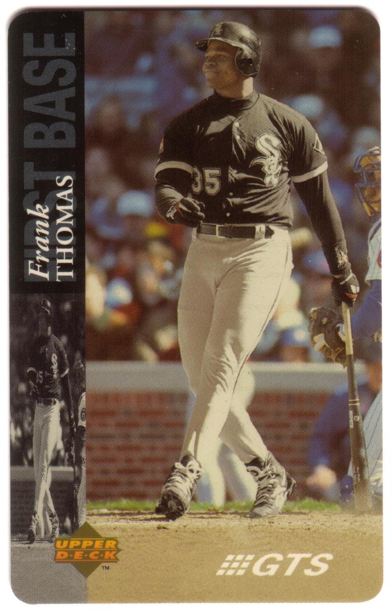 Keywords on the card identify it as tied to the MLB and Frank Thomas, reinforcing its authenticity within baseball collectibles. The card is sealed, preserving its condition for collectors and fans of Frank Thomas and baseball history.